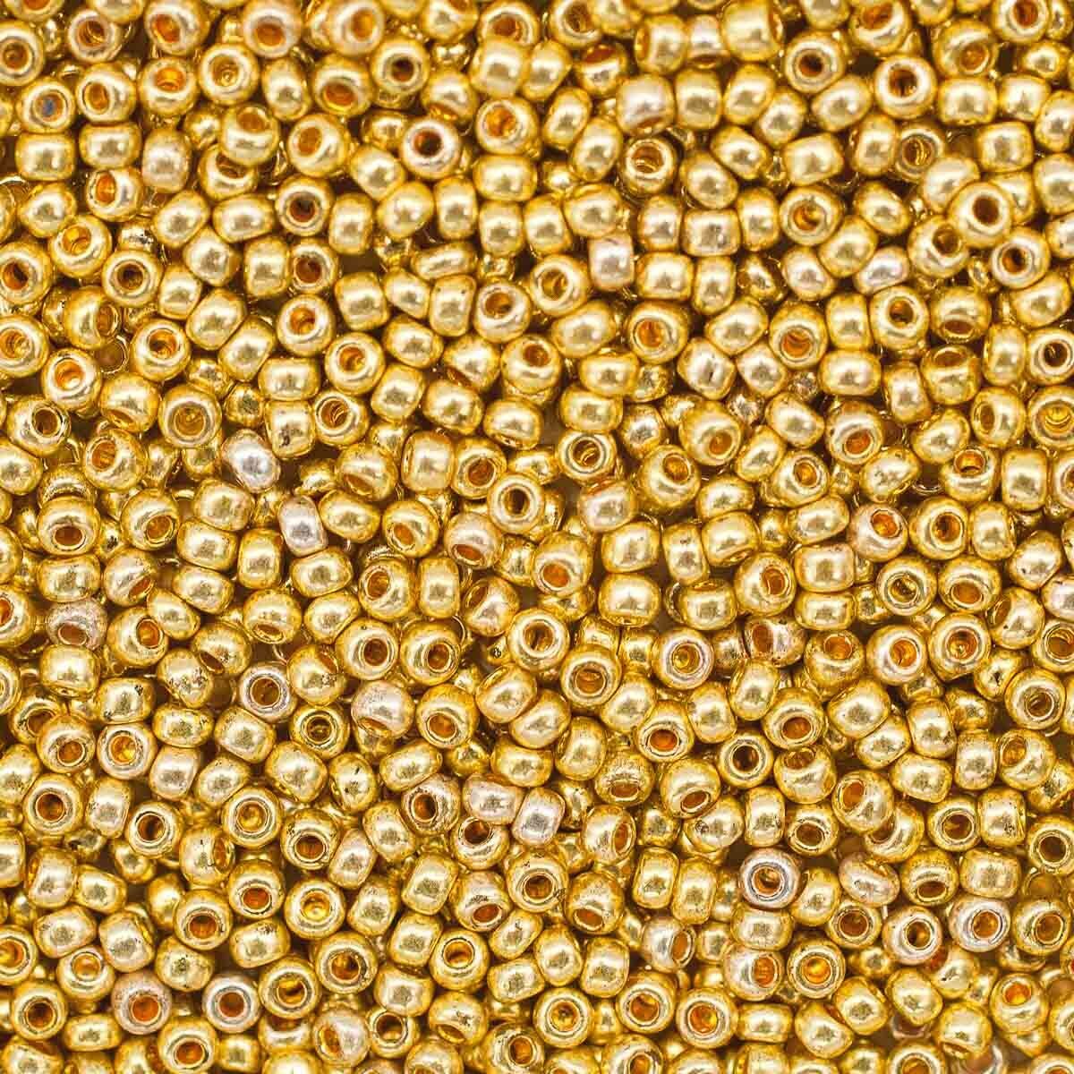 Аккуратно откалиброванный бисер сорта solgel из прозрачного чешского стекла с покрытием 'металлик'. Отличается большим выбором оттенков цвета. Классическая форма. Подходит для создания украшений, вышивки одежды, картин, предметов интерьера и др. Допускается стирка при температуре до 40гр.C. Для сохранения блеска не допускать длительного контакта с кожей, беречь от интенсивного трения и воздействия агрессивных моющих средств. Цвет: золотистый. Размер: 10/0 (2,3 мм). Объем: расфасован в пакетики по 20 г.