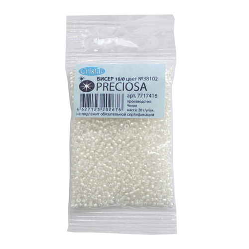 Бисер Preciosa прозрачный с цветным центром 10/0 (2.3 мм), круглое отверстие, 20гр, (38102)331-19001-10/0 (2.3 мм), 5 шт
