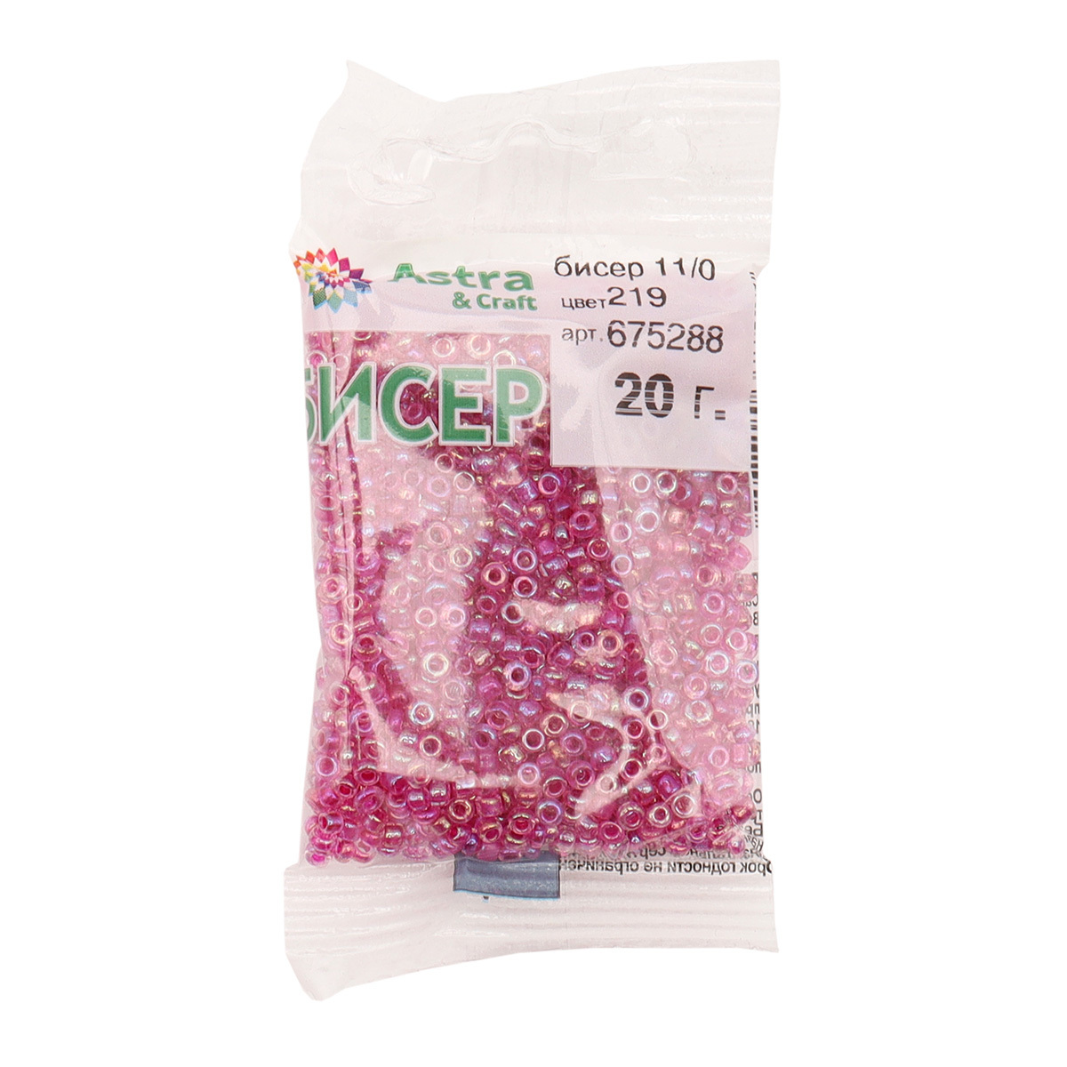 Бисер Astra&Craft 11/0 (2.1 мм), 200 г (10х20 г), цв. 219 фуксия/прозр. с цвет. центром (радужный)