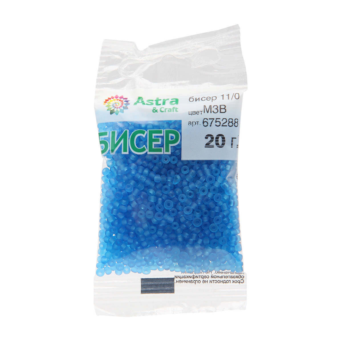 Бисер Astra&Craft 11/0 (2.1 мм), 200 г (10х20 г), цв. М3В темно-голубой/прозрачный, матовый