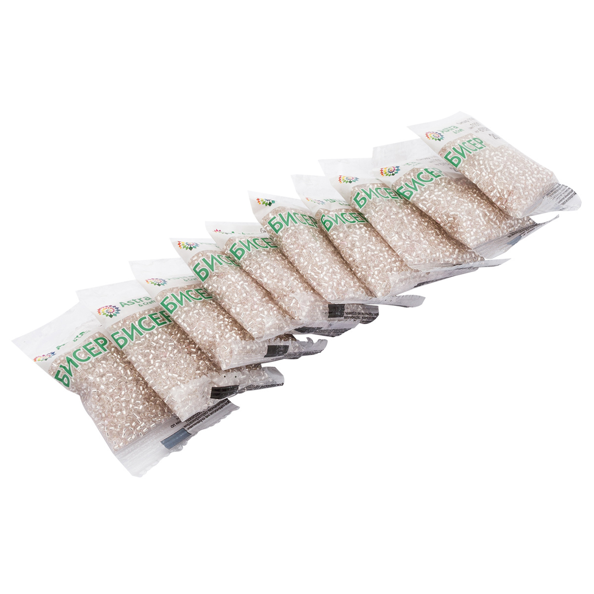 Бисер Astra&Craft 11/0 (2.1 мм), 200 г (10х20 г), цв. 1101 бежево-розовый/прозр.серебрист.центр (круг.отв.)