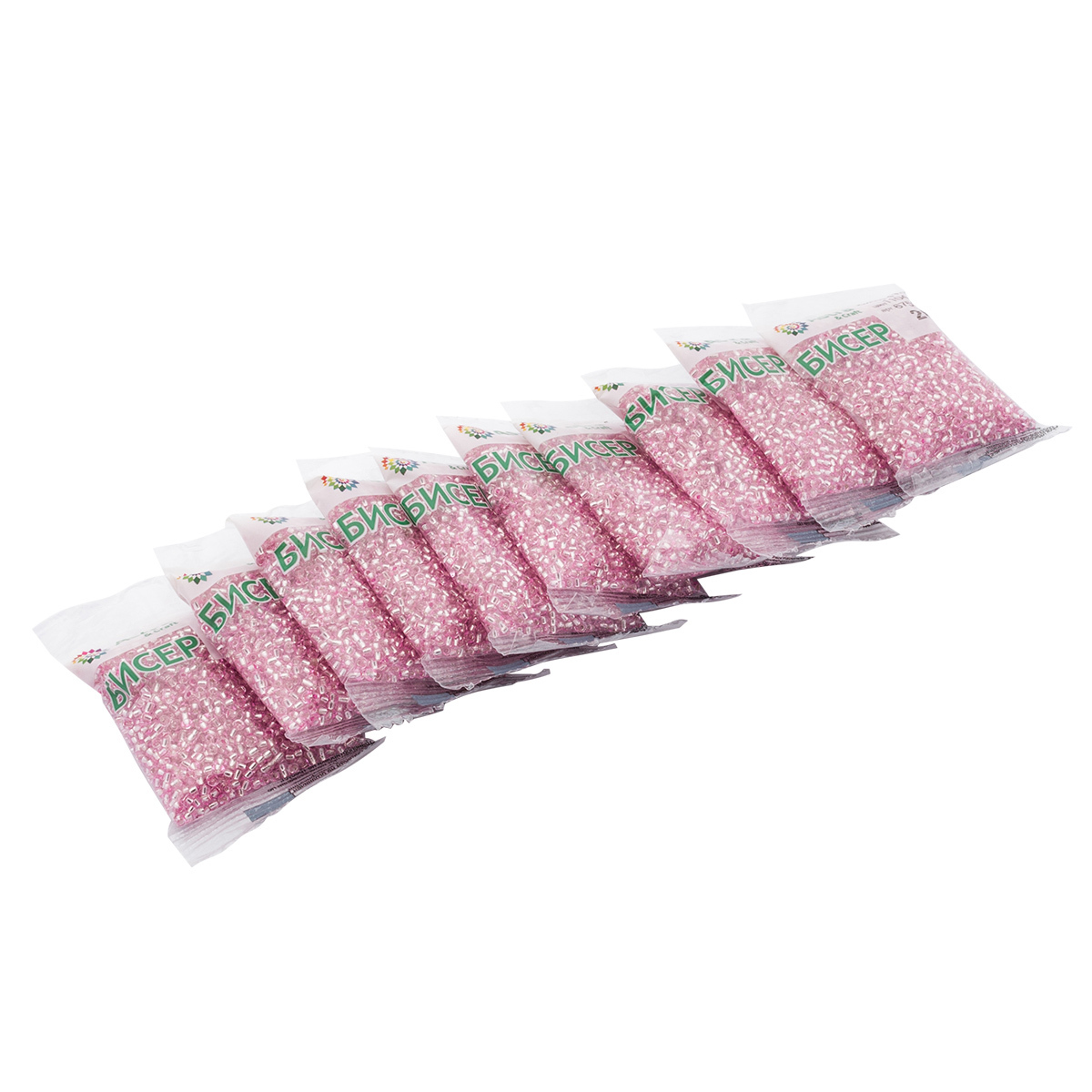 Бисер Astra&Craft 11/0 (2.1 мм), 200 г (10х20 г), цв. 1104 розовый/прозр.серебрист.центр (круг.отв.)