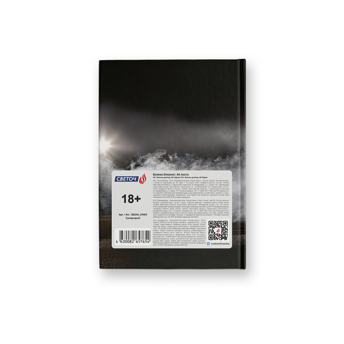 Внутренний блок изготовлен из качественной офсетной бумаги плотностью 60 г/кв. м, 100% белизны, обложка - твердый картон. Линовка - клетка.