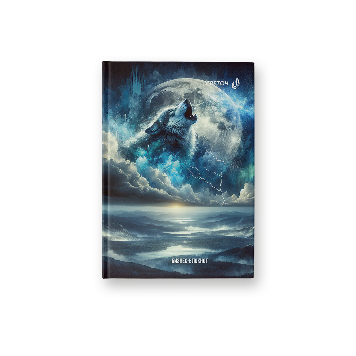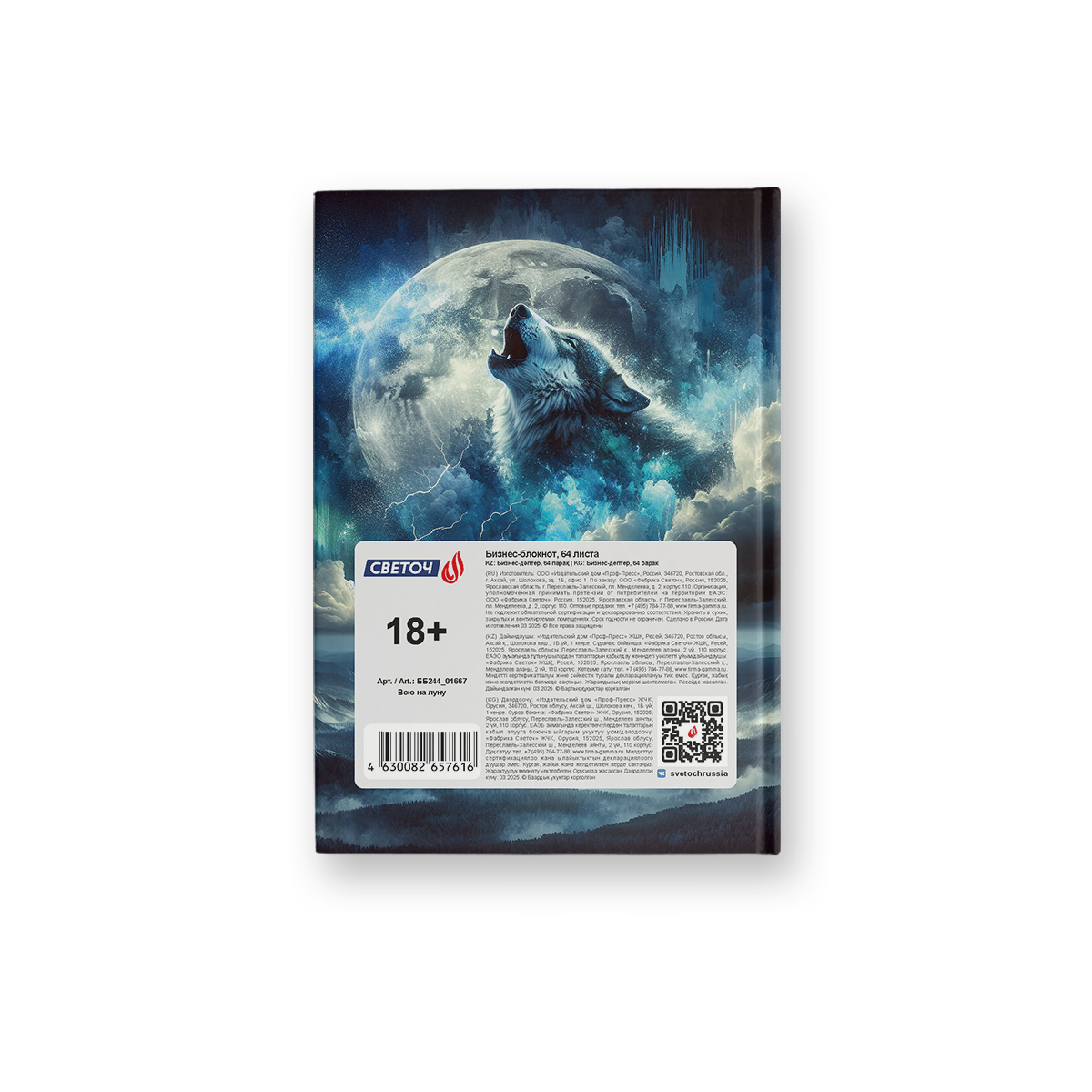 Бизнес-блокнот, глянцевая ламинация, ББ244 A6 64 л. 4 шт клетка, Вою на луну 01667, Светоч