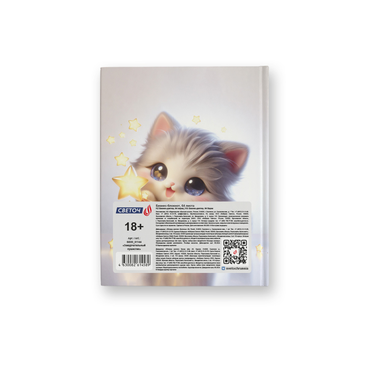 Бизнес-блокнот A6 64 л. 24 шт, клетка, матовая ламинация, Замурчательный пушистик 01144, Светоч ББ93