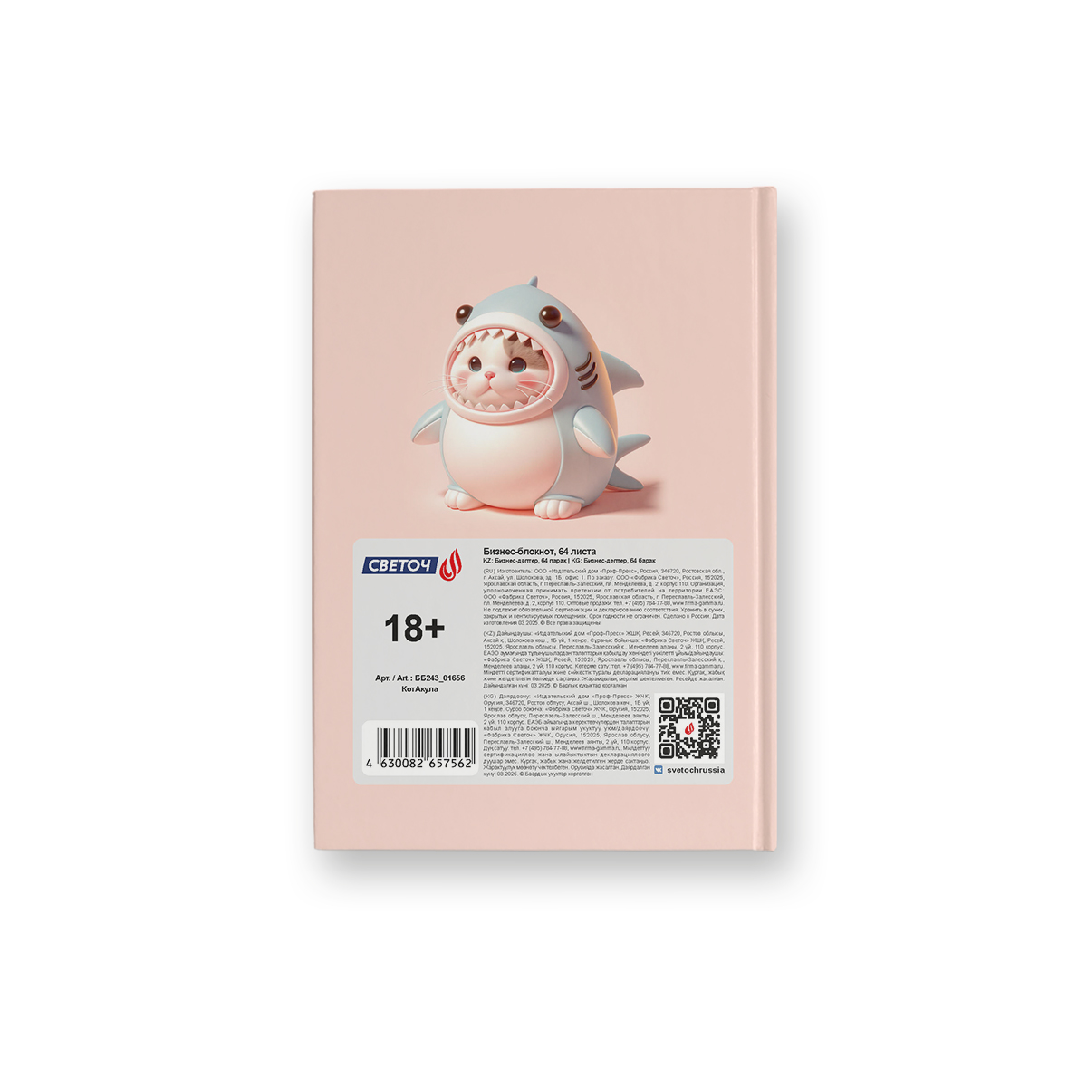 Внутренний блок изготовлен из качественной офсетной бумаги плотностью 60 г/кв. м, 100% белизны, обложка - твердый картон. Линовка - клетка.