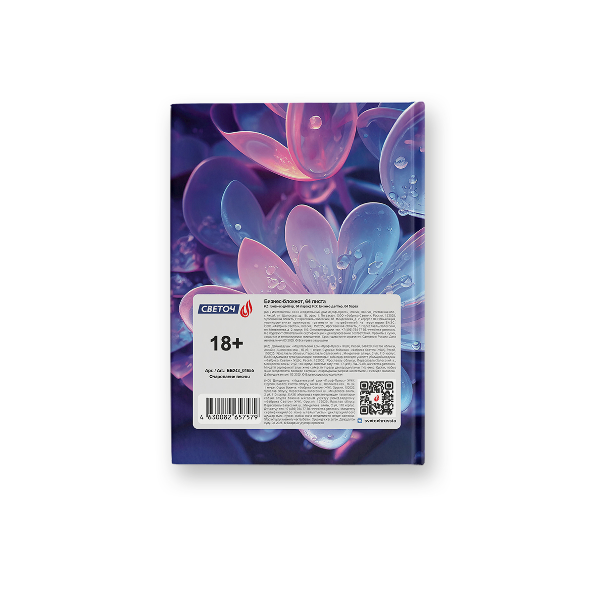 Дизайн изделия дополнен спецэффектом в виде матовой ламинации и выборочного лака.