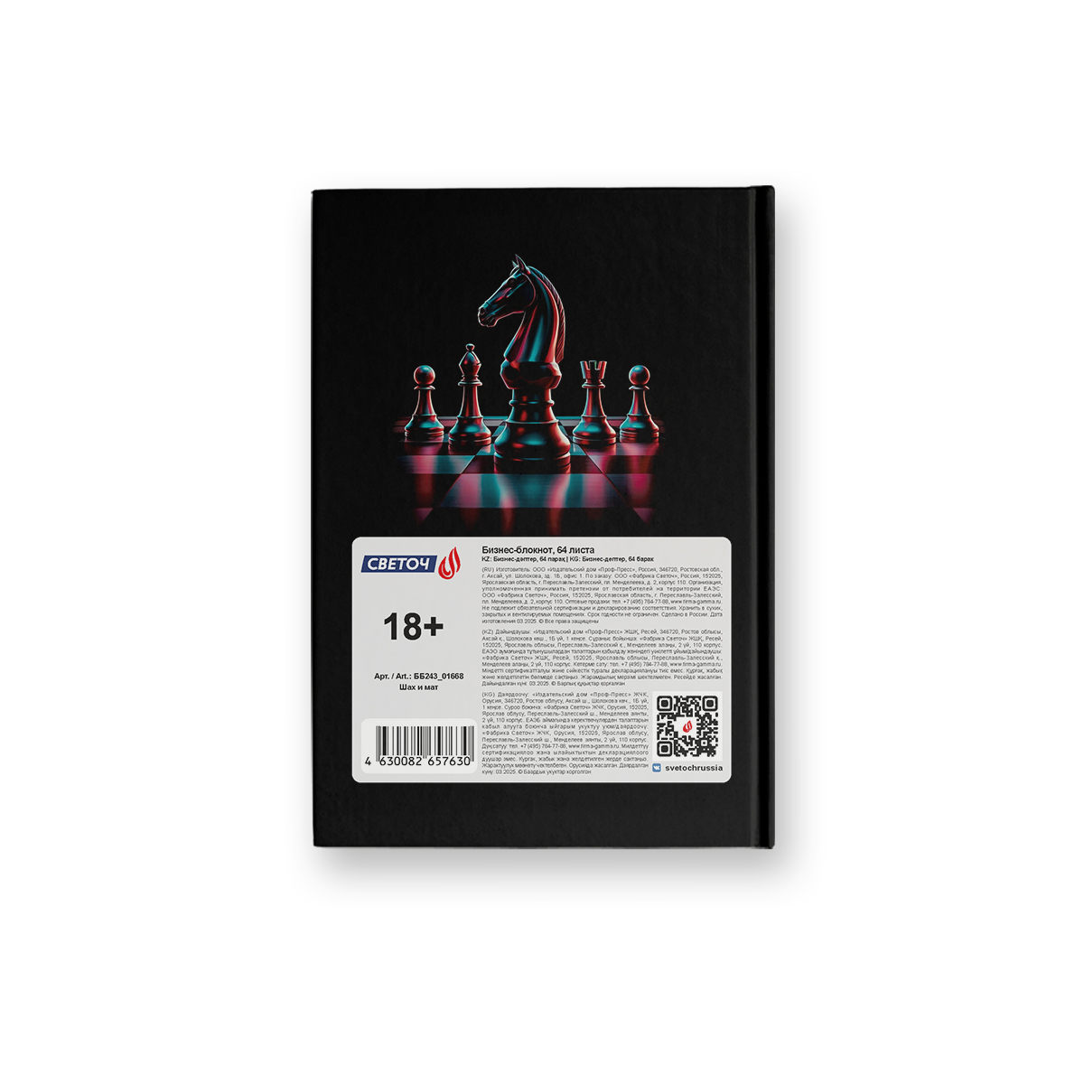 Бизнес-блокнот, матов.ламинация + выбор.лак, ББ243 A6 64 л. 4 шт клетка, Шах и мат 01668, Светоч