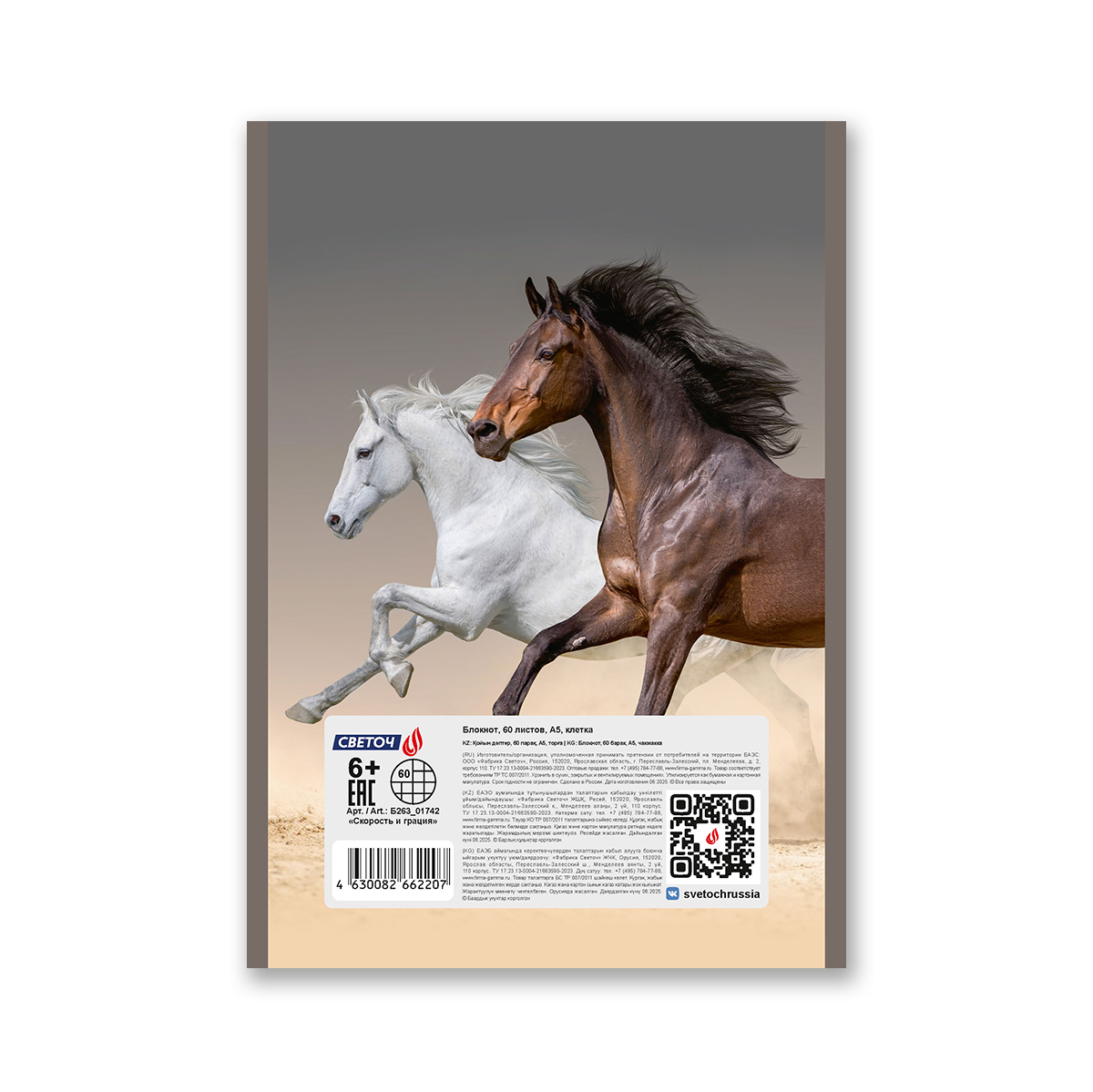 Блокнот на скобе, A5 60 л. 12 шт клетка, Скорость и грация 01742, Б263 Светоч