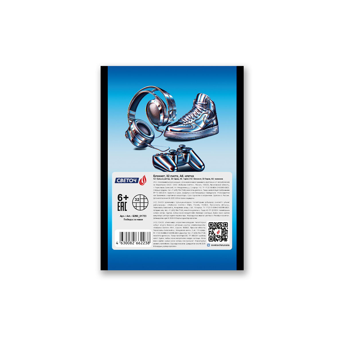 Удобный и стильный блокнот 32 листа, А6 формата - подойдёт для ваших записей, заметок и зарисовок. Небольшой, удобный размер блокнота позволяет всегда брать его с собой и делать записи в любой ситуации. Внутренний блок изготовлен из качественной офсетной бумаги плотностью 60 г/кв. м, 100% белизны, обложка из мелованного картона плотностью 190 г/кв. м.
