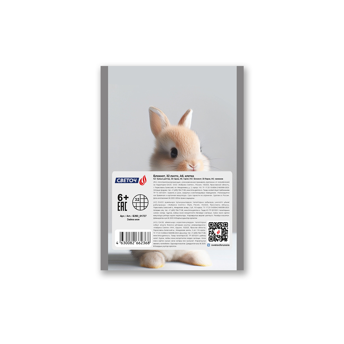 Блокнот на скобе, A6 32 л. 10 шт клетка, Зайка моя 01727, Б260 Светоч