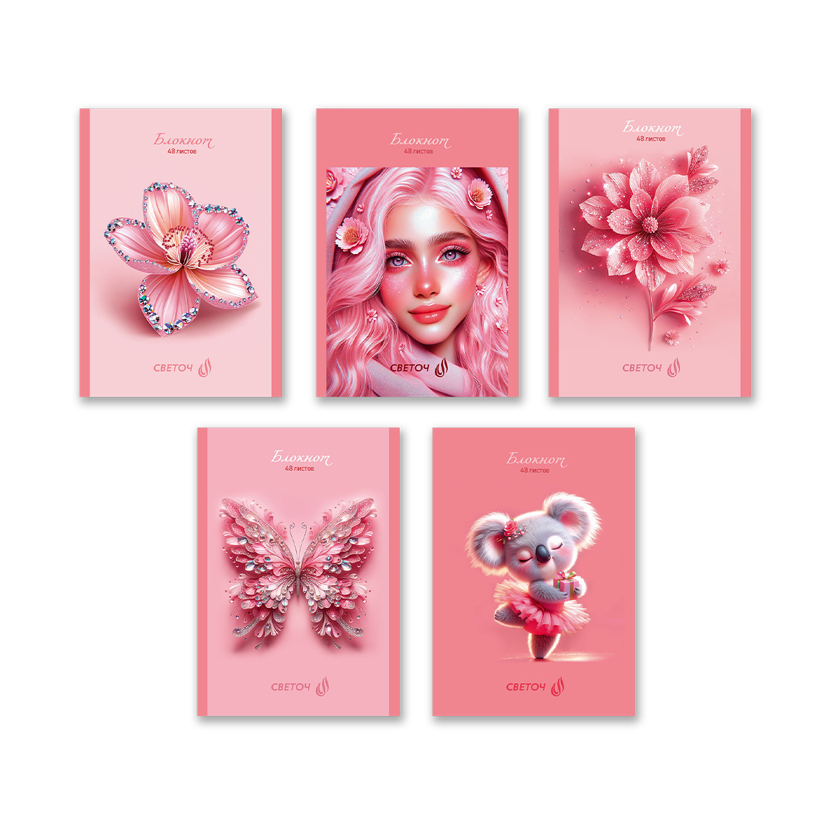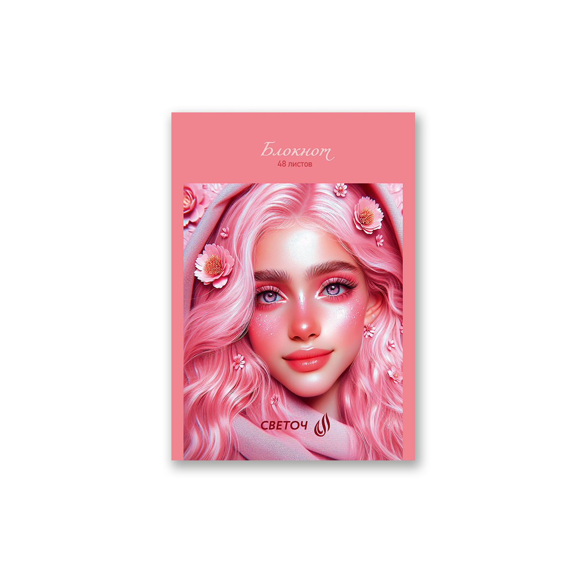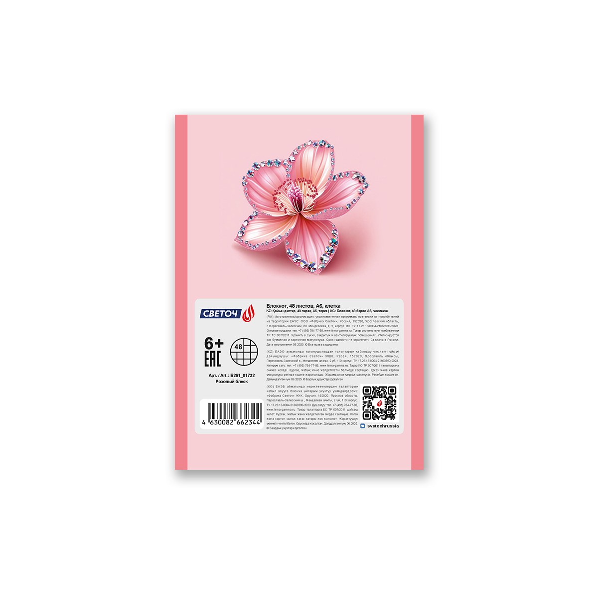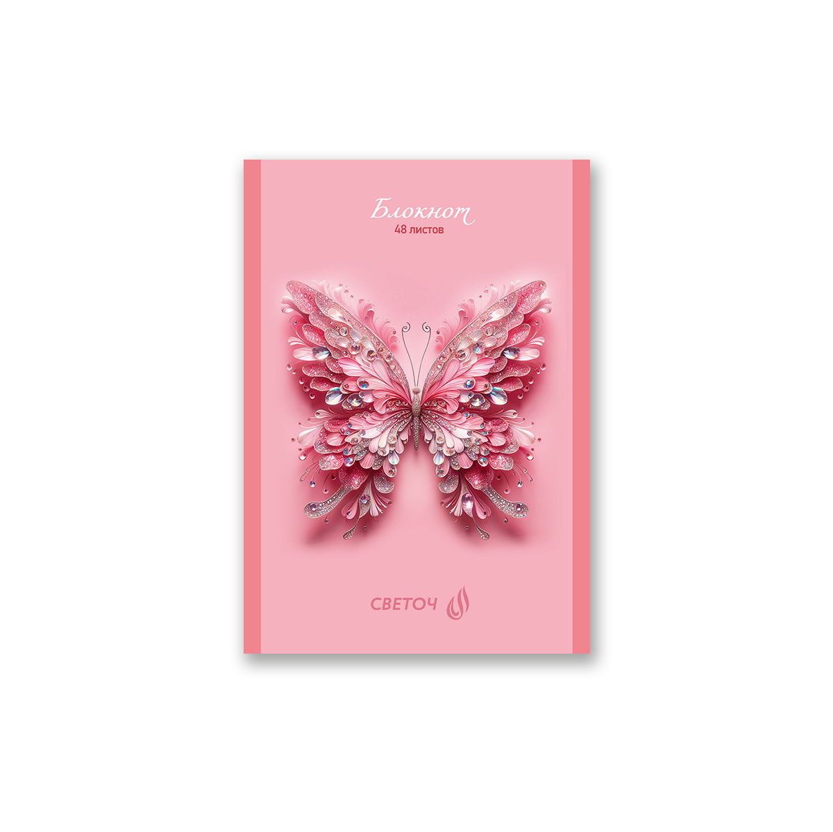 Блокнот на скобе, A6 48 л. 10 шт клетка, Розовый блеск 01732, Б261 Светоч