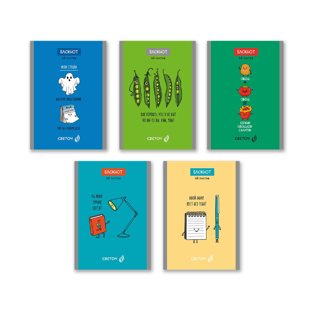 Блокнот на скобе, A6 48 л. 10 шт клетка, Забавные истории 01734, Б261 Светоч