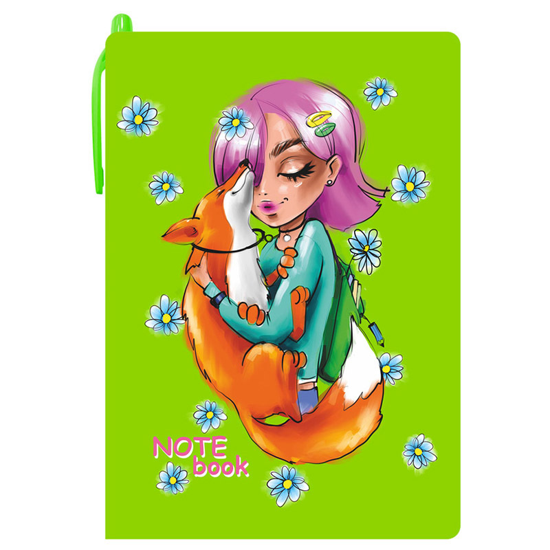 Блокнот с ручкой Девочка с лисой, 105х150 мм, ручка, внутри блок на спирали LAMARK0128