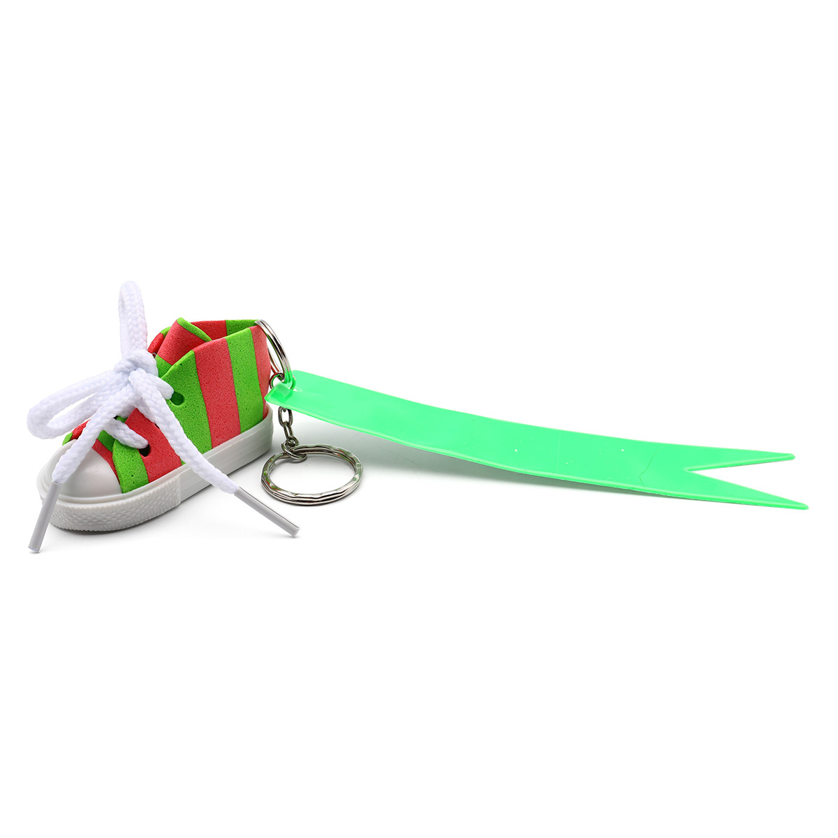 Брелок самосборный Кеды со светоотражающей подвеской флажок, розово-зеленый