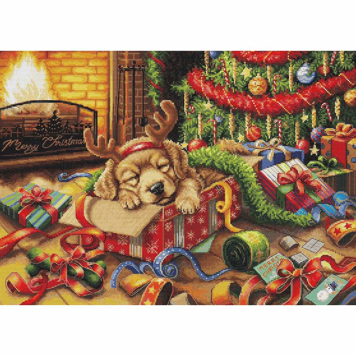 Набор для вышивания нитками Luca-S BU5079, Маленький нарушитель спокойствия Санты, 44х32 см
