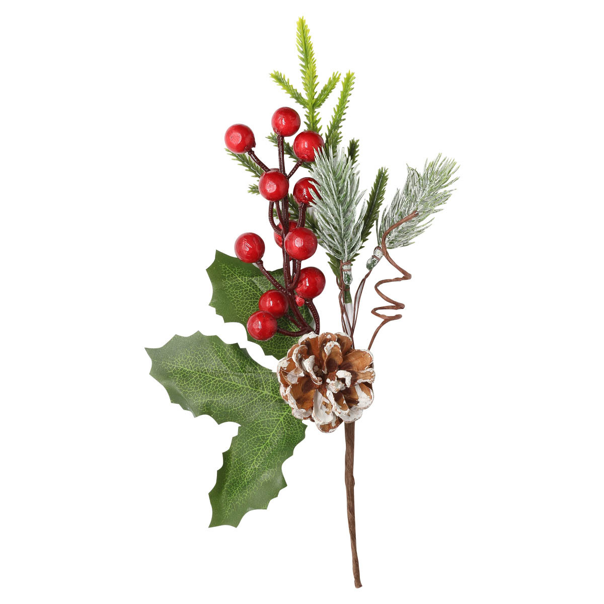 Цветы искусственные Хвоя, ягоды и шишки, 24см, AR113