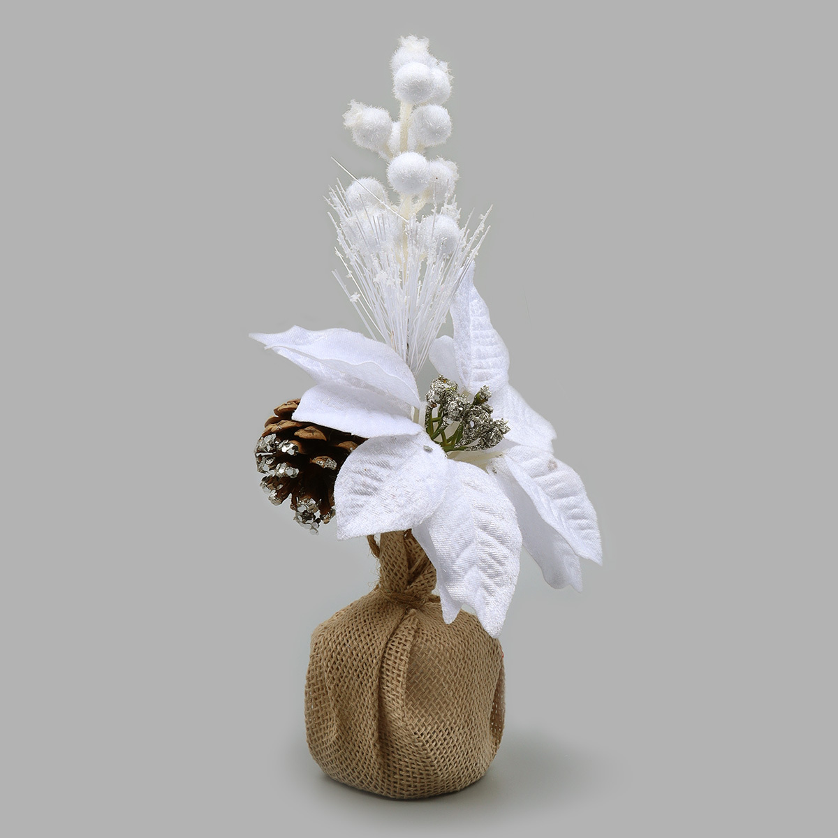 Букетик с шишкой и пуансеттией, белый, XY22-234