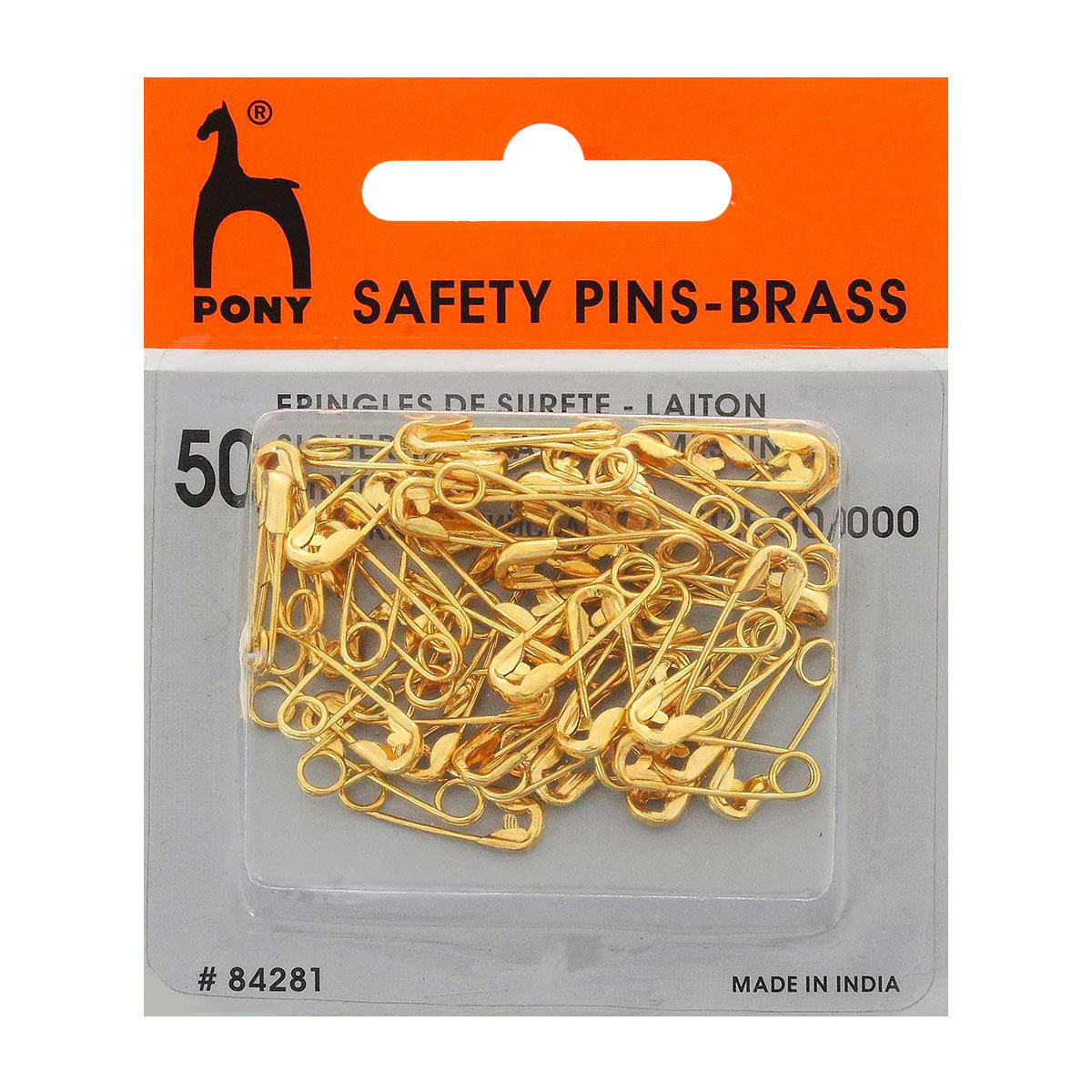 Безопасные закрытые английские булавки. Изготовлены из латуни, устойчивы к коррозии, с покрытием, имитирующим золочение. Это наиболее популярный вид булавок, который широко используется в быту, при шитье одежды или примерке. С помощью английских булавок можно решить множество задач: скрепить детали выкройки перед примеркой или наложением строчки, зафиксировать отложенные петли, продеть резинку через кулиску, оформить драпировку штор и т.д. Поставляются в блистере. В наборе 50 штук. Произведено в Индии.