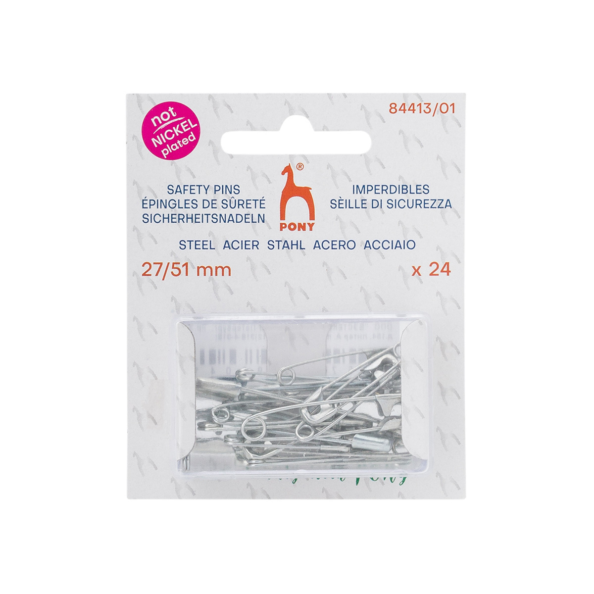 Булавки английские l=27-51 мм, сталь (без никеля), 24 шт, Pony, 84413/01