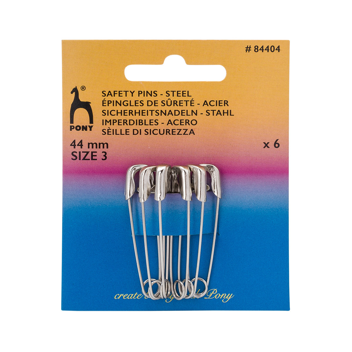 Булавки английские l=44 мм металл, цв. никель, 6 шт, Pony, 84404