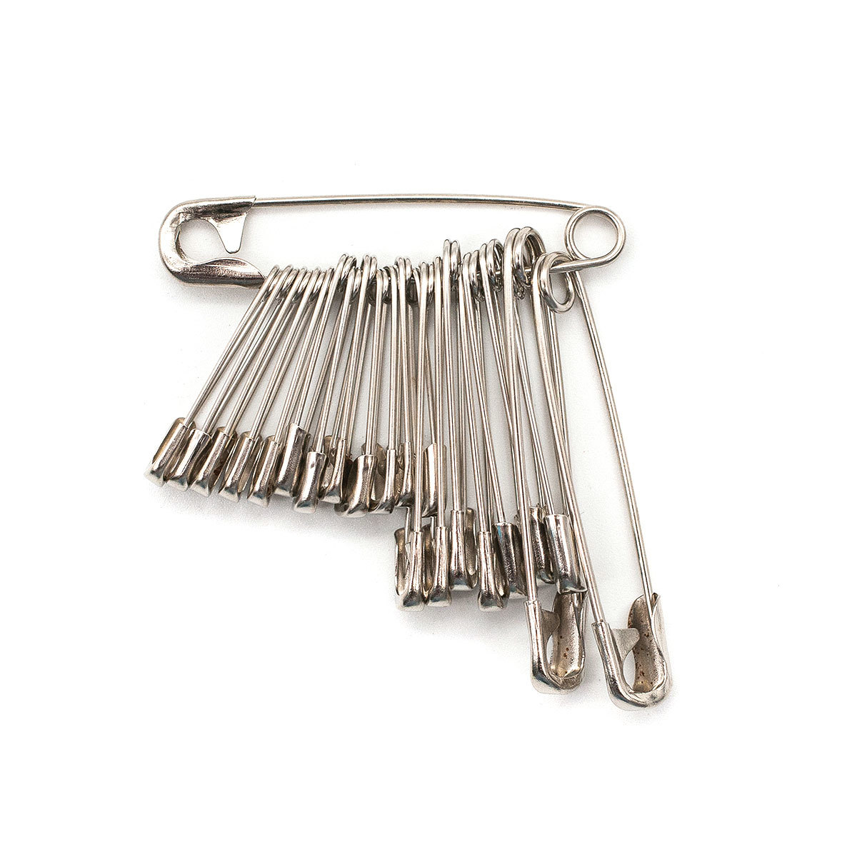 Безопасные закрытые английские булавки. Изготовлены из стали, устойчивы к коррозии. Это наиболее популярный вид булавок, который широко используется в быту, при шитье одежды или примерке. Важная деталь в творчестве и быту. С помощью английских булавок можно решить множество задач: скрепить детали выкройки перед примеркой или наложением строчки, зафиксировать отложенные петли, продеть резинку через кулиску, оформить драпировку штор и т.д. Поставляются в блистере. В наборе 22 штуки. Произведено в Индии. Размер: 5,2 см (3 шт.), 3,6 см (7 шт.), 2,7 см (12 шт.).