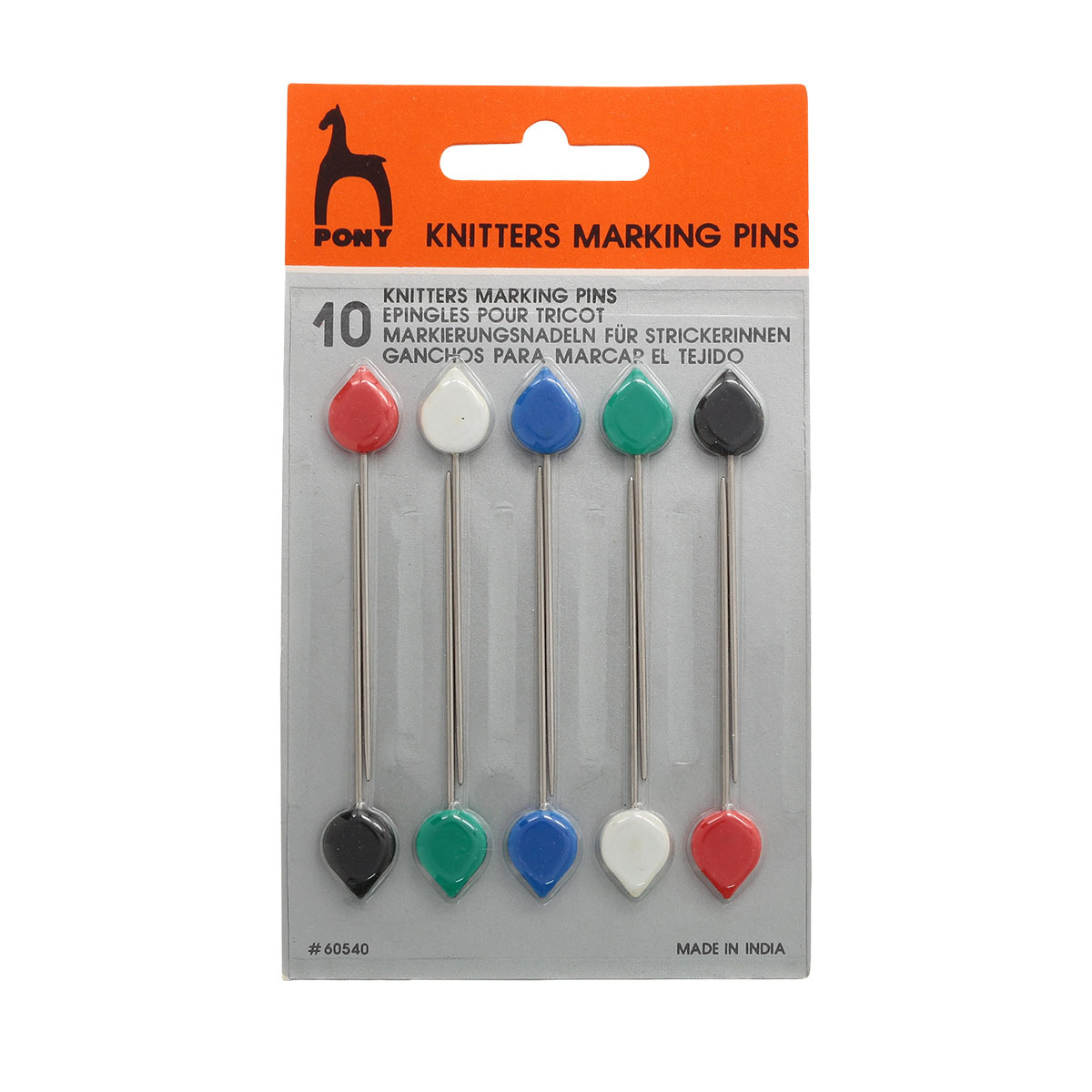 Булавки маркировочные Pony порадуют рукодельниц своим качеством и удобством в применении. Маркировочная булавка, изготовленная из практичного металла, с пластиковой головкой, упрощает работу со сложными узорами, позволяет закреплять на вязаном изделии рукава, карманы, другие элементы, подходит для техники макраме. Булавка петлесъемная представлена с закругленными кончиками, для минимизации травматичности изделия и пальцев. PONY – это всемирно известный индийский бренд. На сегодняшний день продукция этого производителя продается на всех континентах мира и славится своим высоким качеством и разнообразным ассортиментом товаров. Вспомогательные аксессуары для вязания - отличный подарок для вязальщицы. 10 шт. в упаковке.