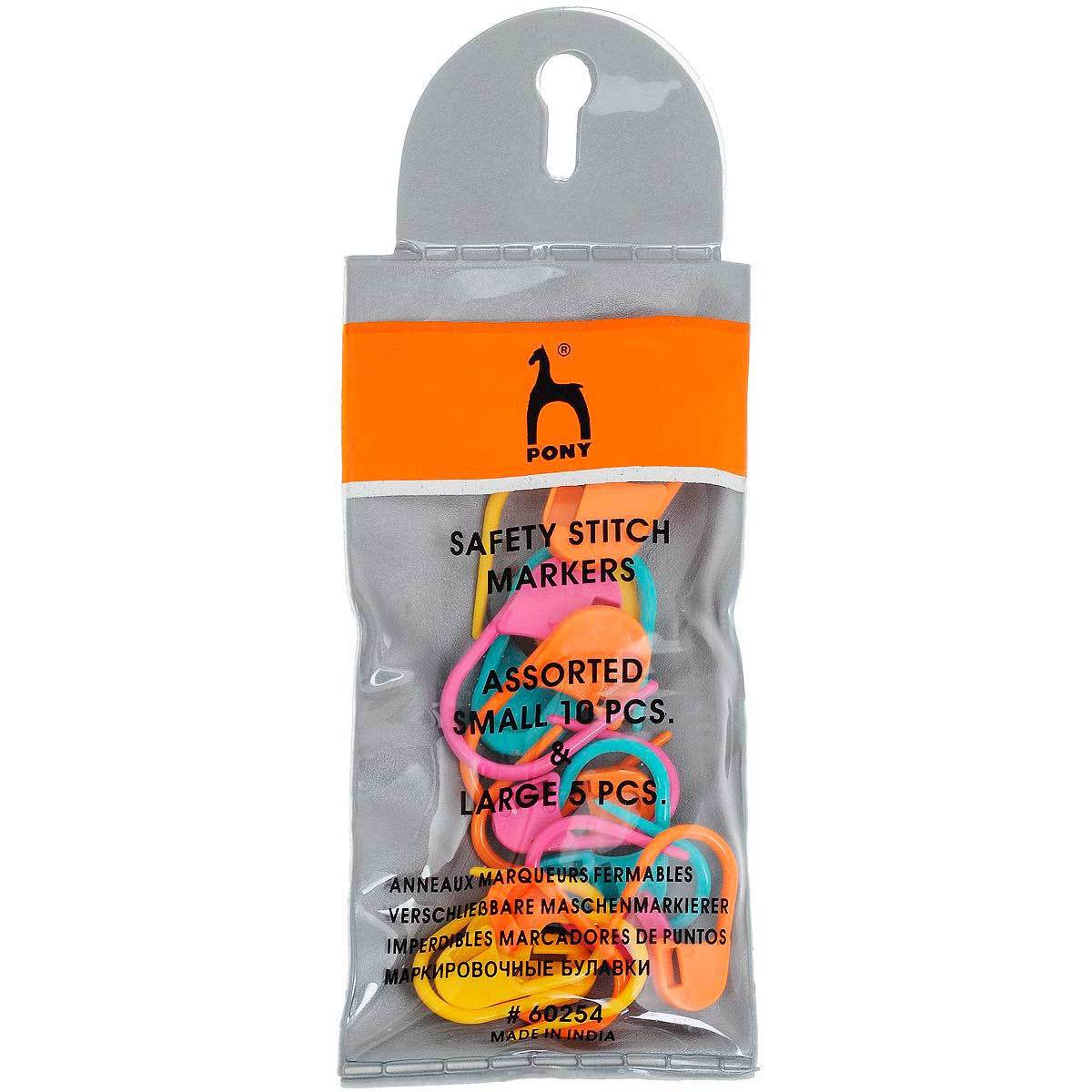 Маркировочные булавки будут полезны не только новичкам, но и профессиональным вязальщицам. Пластиковые булавки предназначены для маркировки и захвата петель. Булавка – удобный аксессуар для вязания, его можно замкнуть, чтобы при работе и хранении он не потерялся, а петли не распустились. Маркировочные булавки следует хранить в раскрытом состоянии. Компания Pony (Индия) известна во всем мире, и заслуженно пользуется уважением покупателей, благодаря высокому качеству изделий и широчайшему ассортименту. Вся продукция, выпускаемая под брендом Pony, проходит строгий контроль качества. Вам остается только получать удовольствие от рукоделия – все остальное PONY продумал до мелочей! Материал: пластик. Количество: 15 шт. Размер булавок: 3х1,5 см, 2,2х1 см.