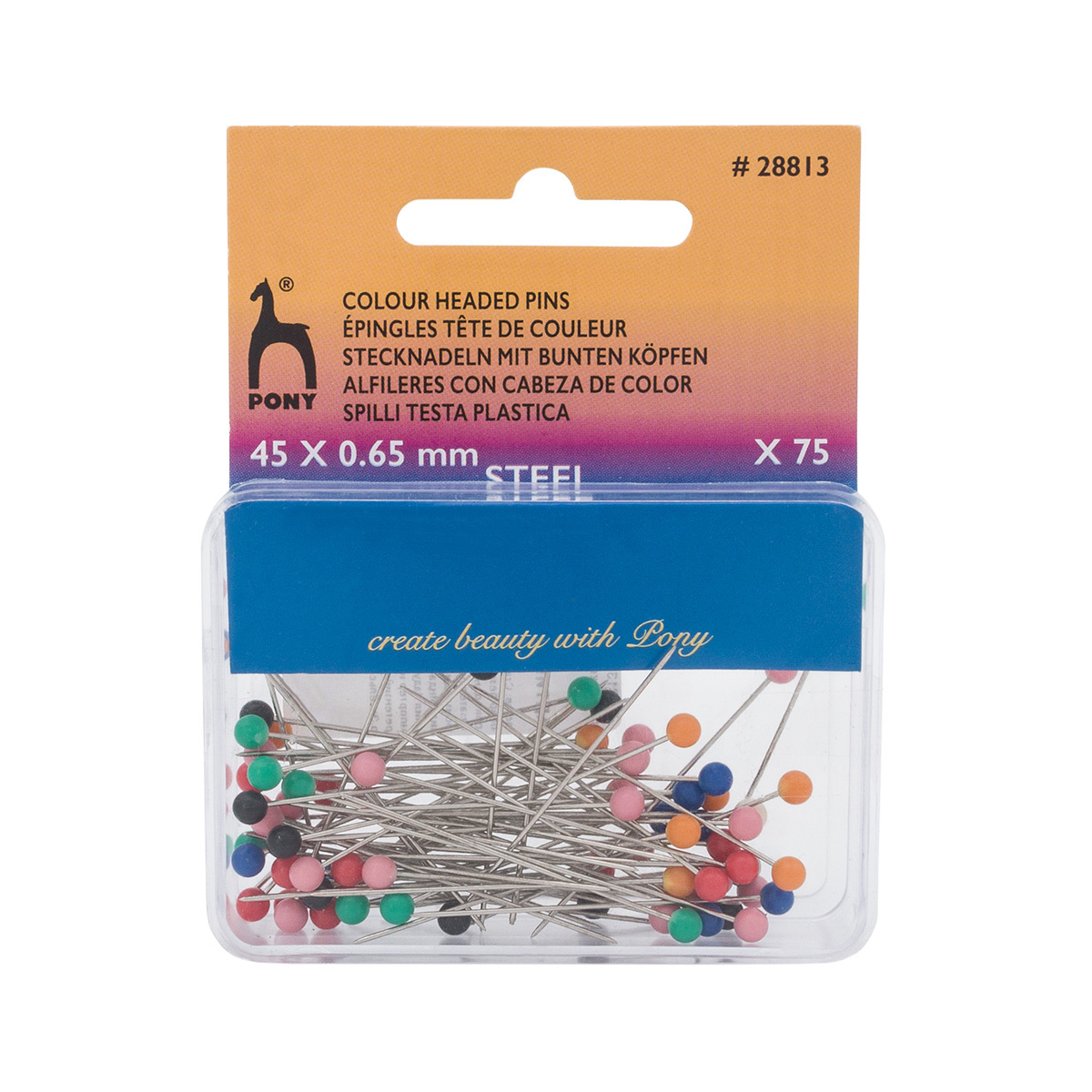 Булавки портновские с цветной головкой 0.65 мм, l=45 мм, сталь, 75 шт, Pony, 28813