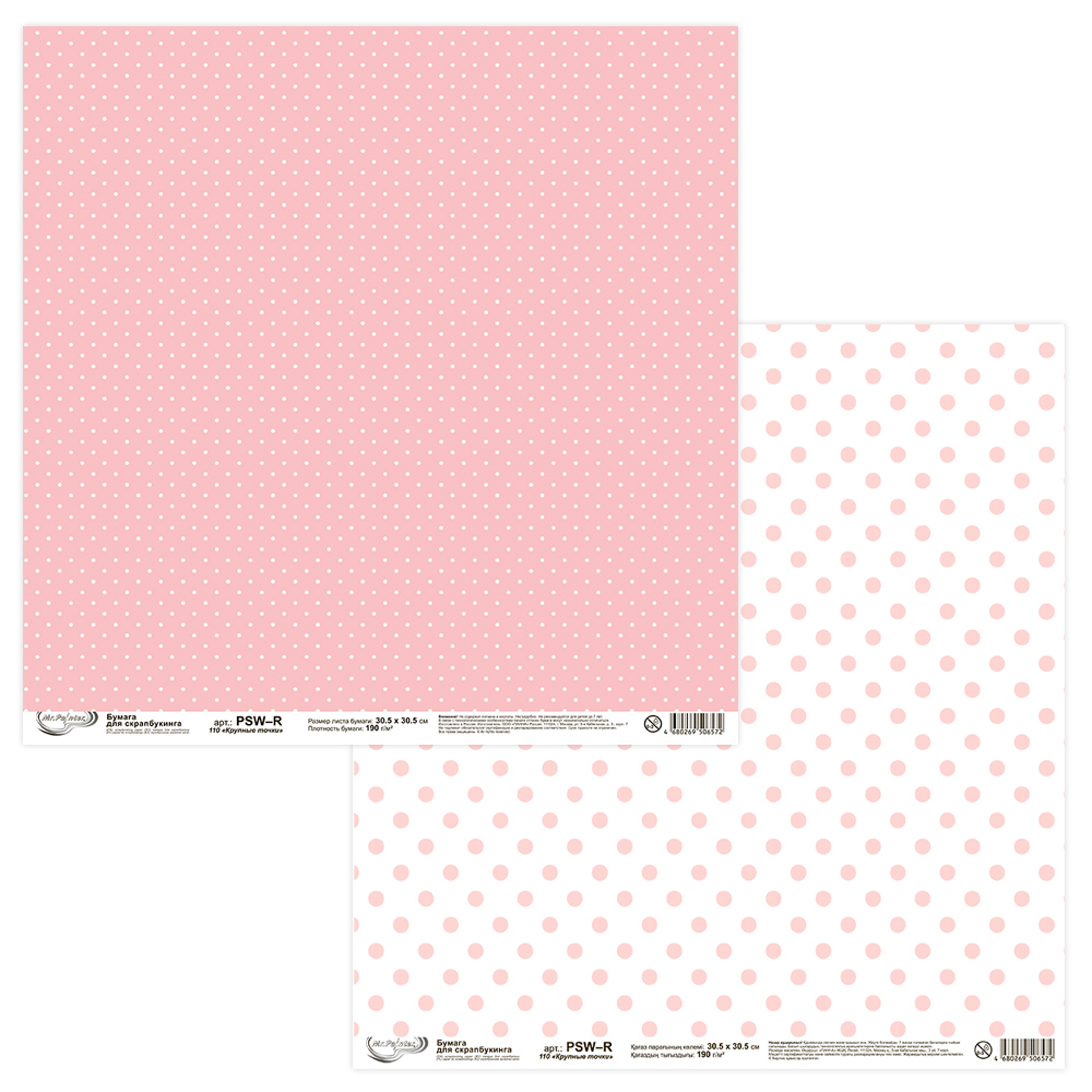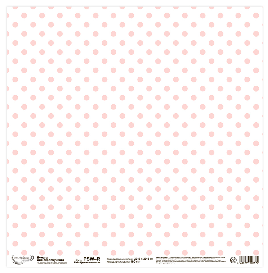 Бумага для скрапбукинга 190 гр/м², 30.5х30.5 см, 10 шт, 110 Крупные точки, Mr.Painter PSW-R