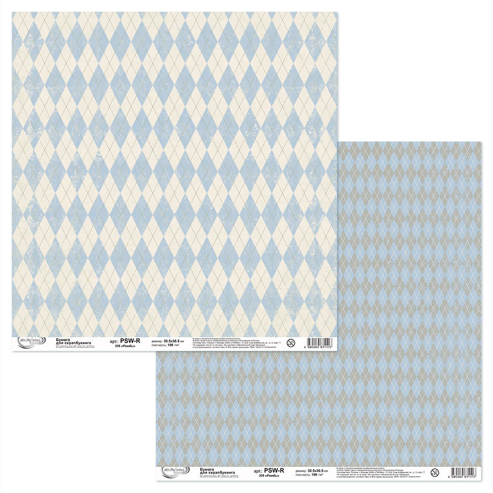 Бумага для скрапбукинга 190 гр/м², 30.5х30.5 см, 10 шт, 305 Ромбы, Mr.Painter PSW-R