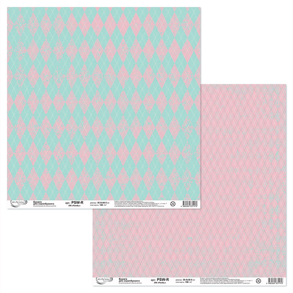 Бумага для скрапбукинга 190 гр/м², 30.5х30.5 см, 10 шт, 306 Ромбы, Mr.Painter PSW-R