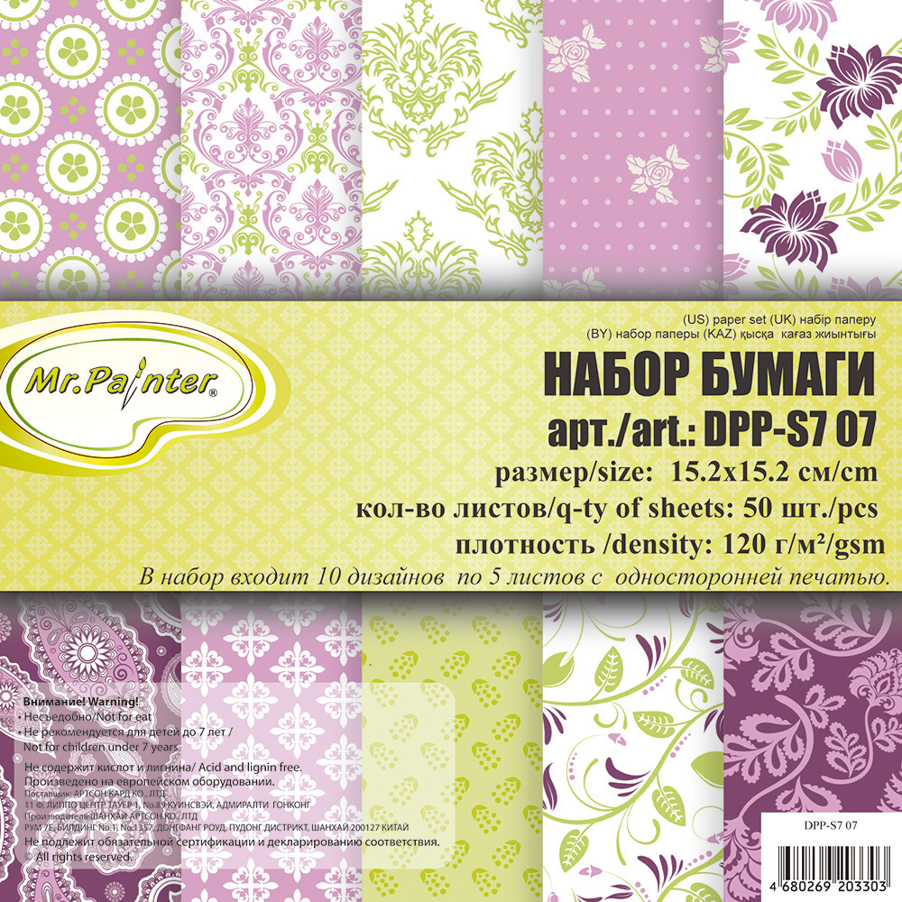 Бумага для скрапбукинга 120 г/м² 15.2х15.2 см 3х50 л., Mr.Painter, DPP-S7