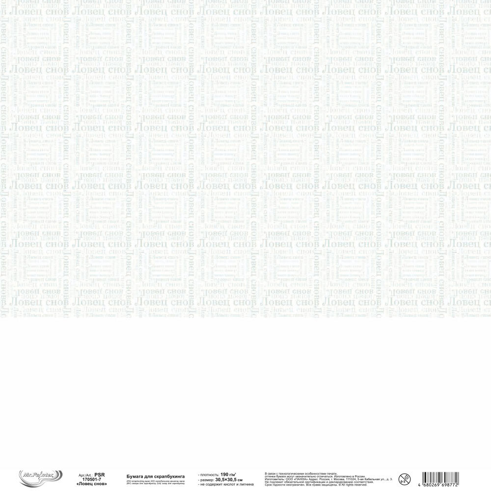 Бумага для скрапбукинга "Mr.Painter" PSR 170501 с уникальными дизайнами, разрабатывается и производится в России под контролем специалистов.