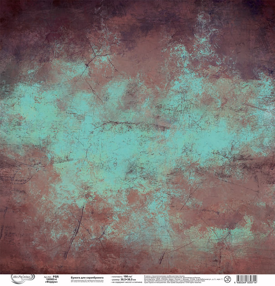 Двусторонняя бумага для скрапбукинга размером 30.5*30.5 см, бескислотная [Acid-Free] и без лигнина [Lignin-Free]. Плотность 190 г/м²,.