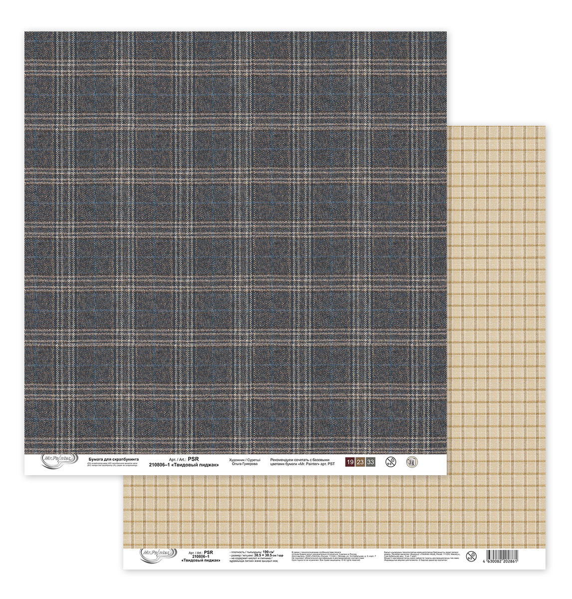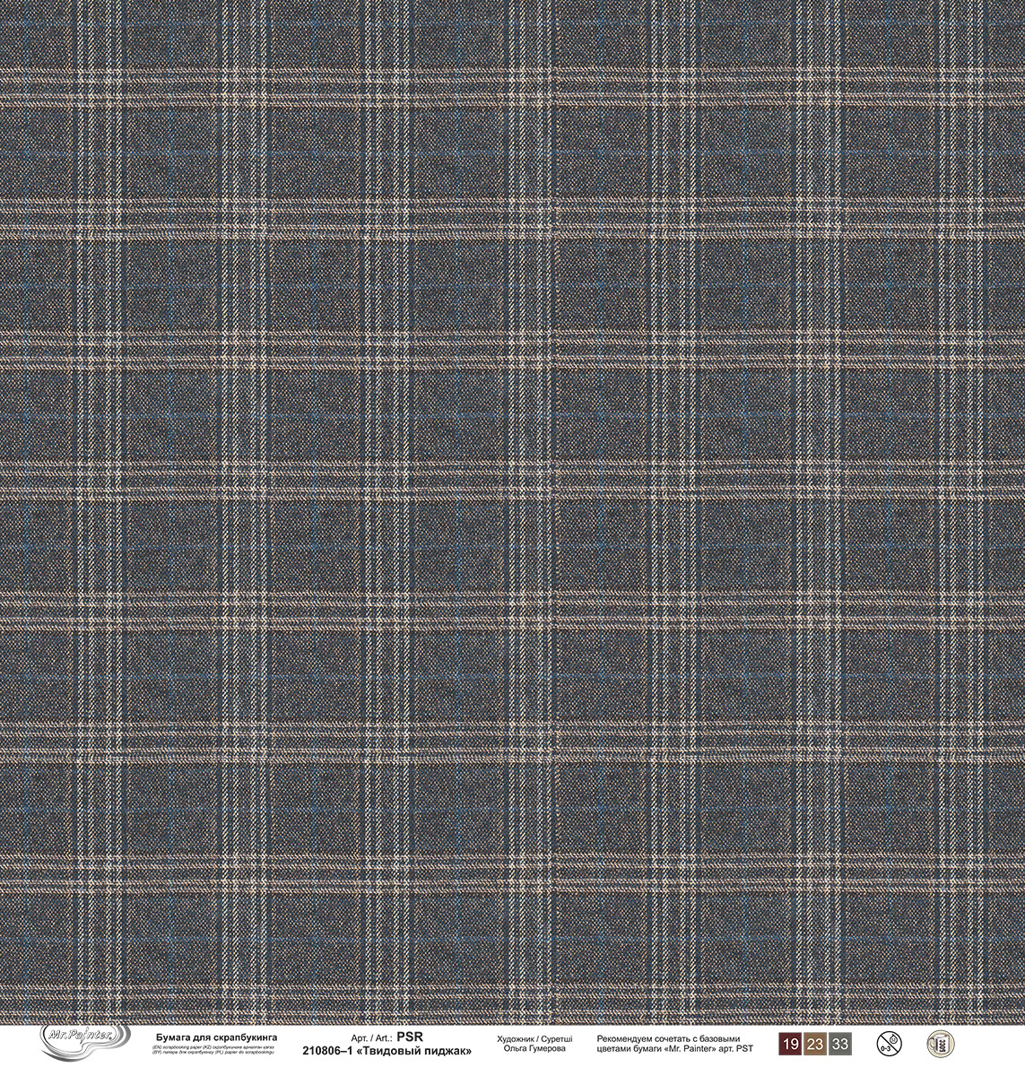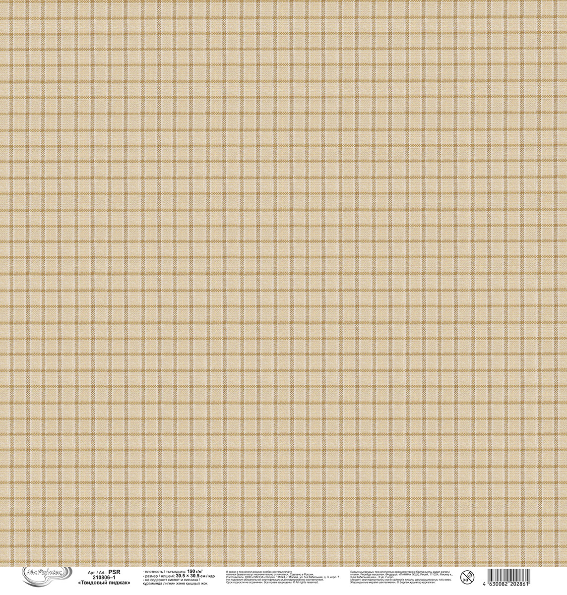 Бумага для скрапбукинга 190 г/м², 30.5х30.5 см, Твидовый пиджак, 10 шт, 1, Mr.Painter PSR 210806
