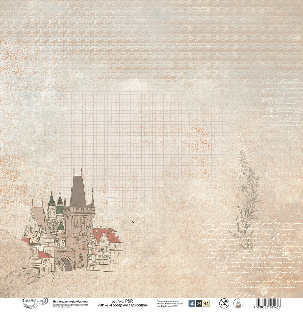 Бумага для скрапбукинга "Mr.Painter" PSR 2501 "Городские зарисовки" приглашает тебя прогуляться по мощеным улочкам старинных городов, прокатиться на стучащем трамвае, любоваться кованными вывесками и фонарями и помечтать о новых путешествиях. Скрапбукинг -это сохранение воспоминаний в альбомах. Эта коллекция прекрасно подойдет для альбомов о городских путешествиях. Оформите уже сделанные отпускные фотографии, или подготовьте альбом для новых впечатлений.