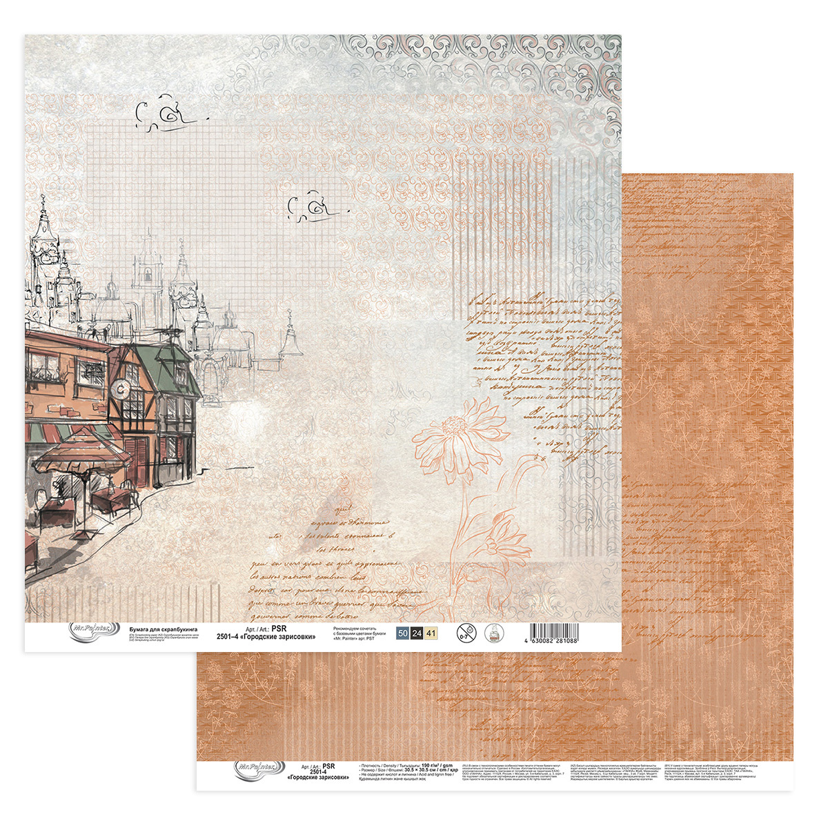 Бумага для скрапбукинга "Mr.Painter" PSR 2501 "Городские зарисовки" приглашает тебя прогуляться по мощеным улочкам старинных городов, прокатиться на стучащем трамвае, любоваться кованными вывесками и фонарями и помечтать о новых путешествиях. Скрапбукинг -это сохранение воспоминаний в альбомах. Эта коллекция прекрасно подойдет для альбомов о городских путешествиях. Оформите уже сделанные отпускные фотографии, или подготовьте альбом для новых впечатлений.