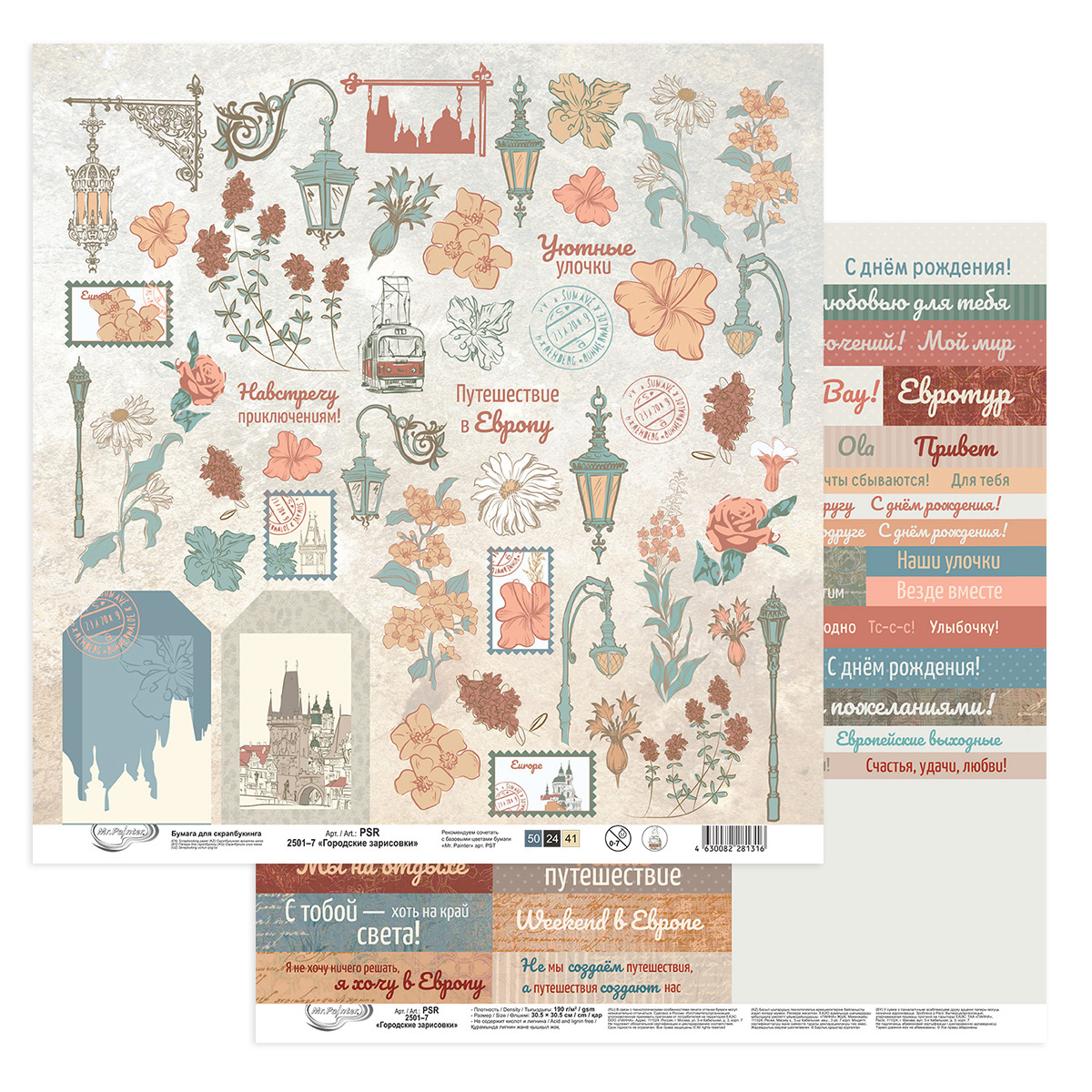 Бумага с уникальными дизайнами, разрабатывается и производится в России под контролем специалистов. Двусторонняя бумага для скрапбукинга размером 30.5*30.5 см,