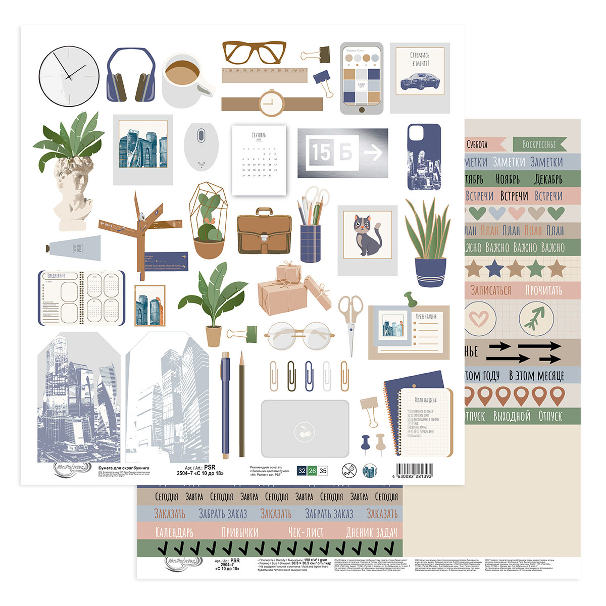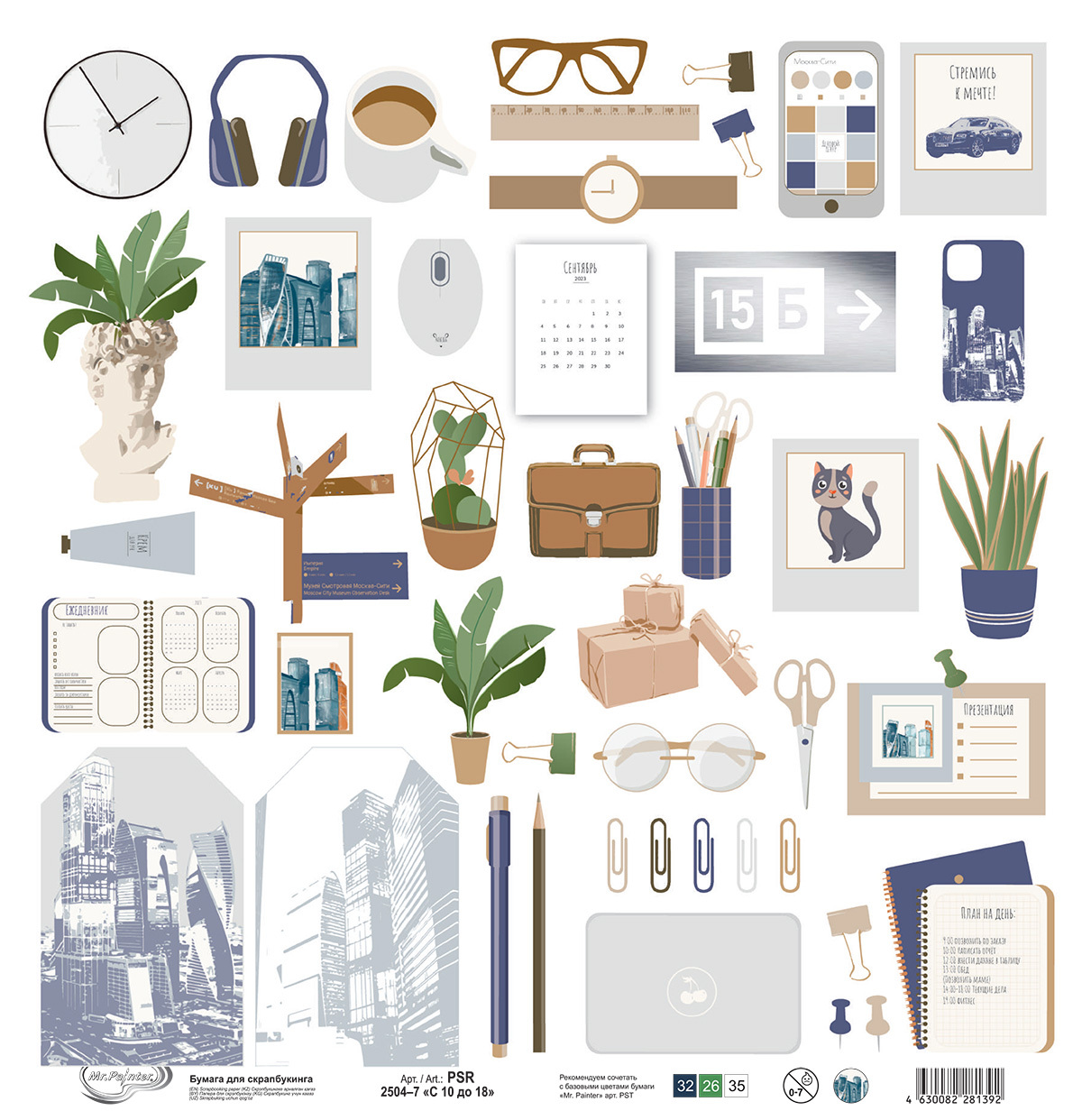 Лаконичная и сдержанная серия об офисной жизни, делах, планах. Светлые оттенки, современные рисунки, актуальные компоненты - все это вы найдется в деловой коллекции скрап бумаги " с 10 до 18". Эта бумага для современных мужских работ, открыток и поздравлений на 23 февраля, поздравлений офисным сотрудникам. Прекрасно подойдет для оформления рабочих ежедневников и блокнотов, форзацев записных книг, рабочих планов.
