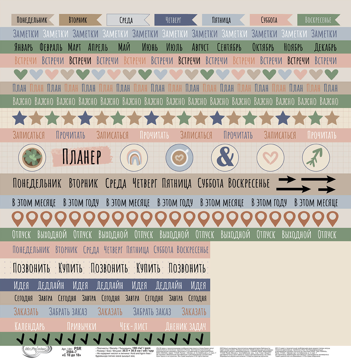 Бумага с уникальными дизайнами, разрабатывается и производится в России под контролем специалистов. Двусторонняя бумага для скрапбукинга размером 30.5*30.5 см,