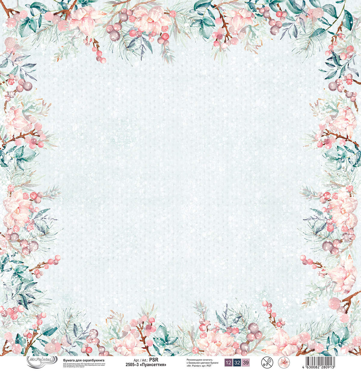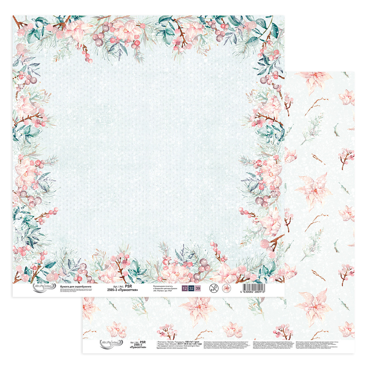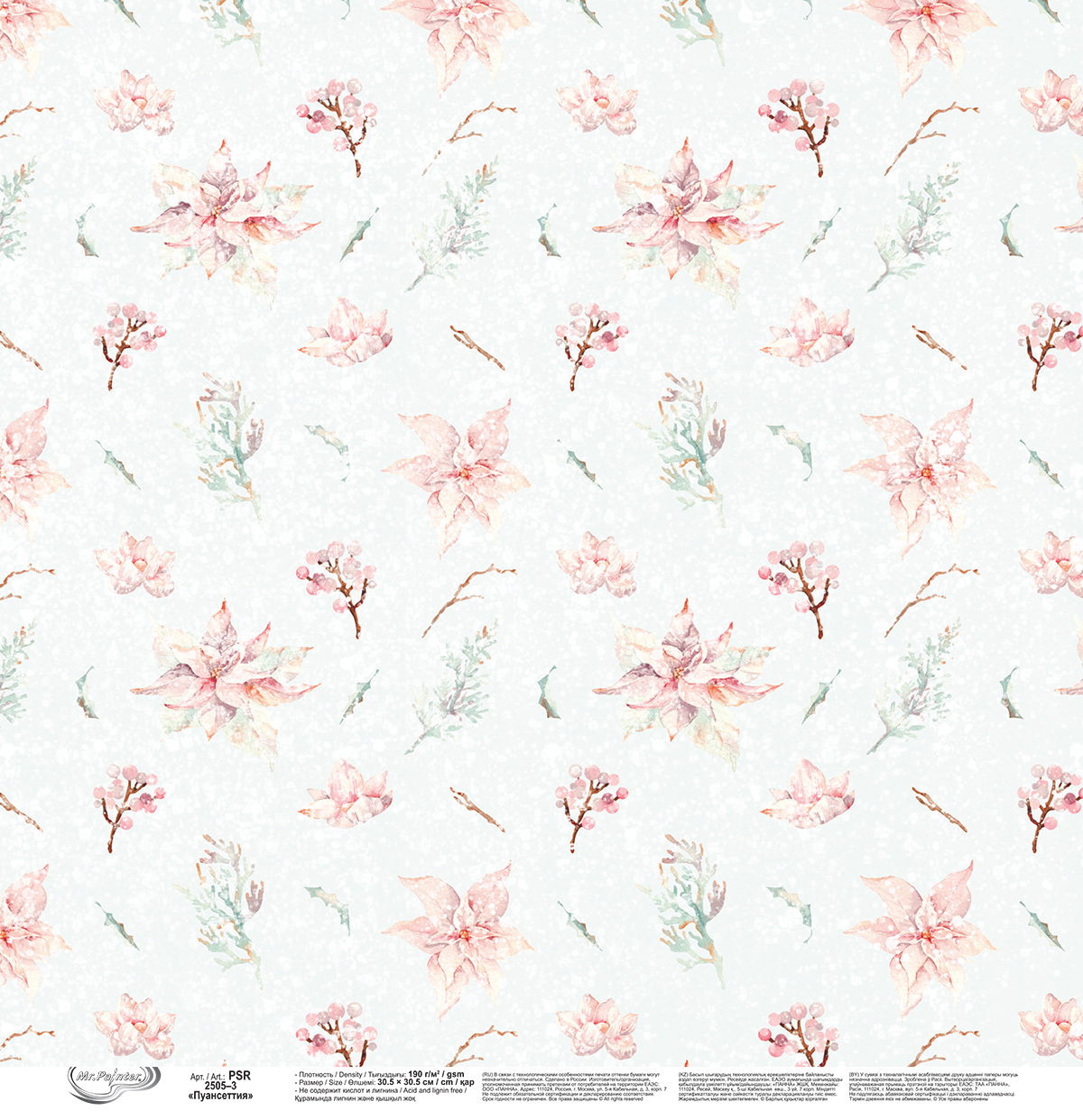 Романтичная и нежная новогодняя бумага для скрапбукинга "Mr.Painter" PSR 2505 "Пуансеттия" станет прекрасным фоном для ваших поделок. Используйте листы как основу для открыток, альбомов. Коллекция Пуансеттия создаст праздничное настроение.