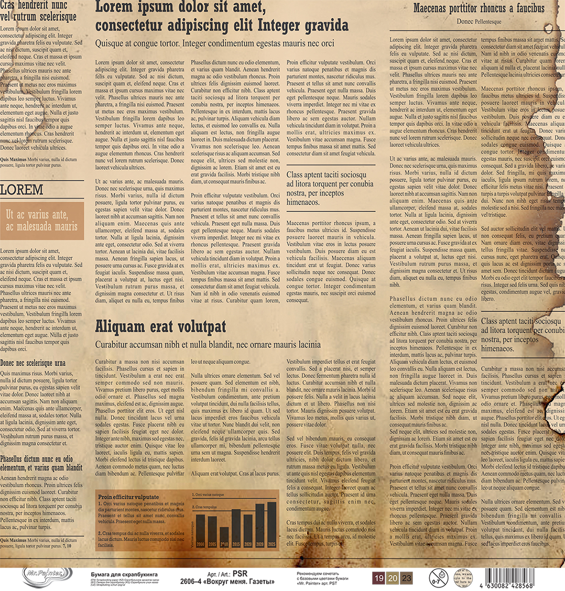 Бумага для скрапбукинга Вокруг меня. Газеты 190 г/м², 30.5х30.5 см, 10 шт, 4, Mr.Painter PSR 2606