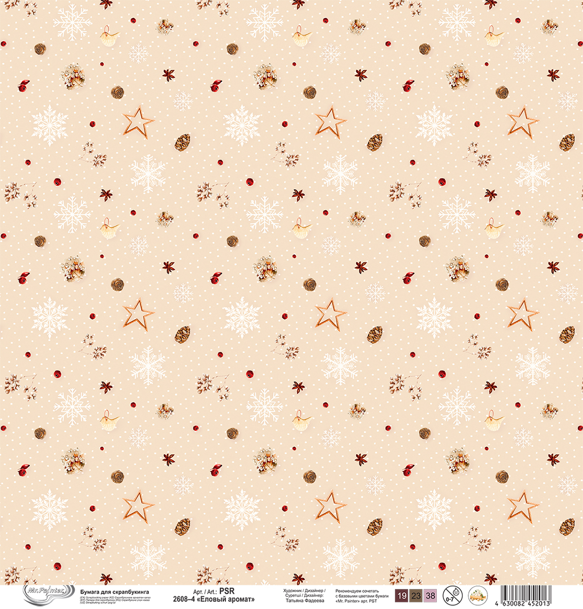Зимняя уютная бумага для скрапбукинга "Mr.Painter" PSR 2608 станет прекрасным фоном для ваших новогодних поделок. Используйте листы как основу для открыток, альбомов.