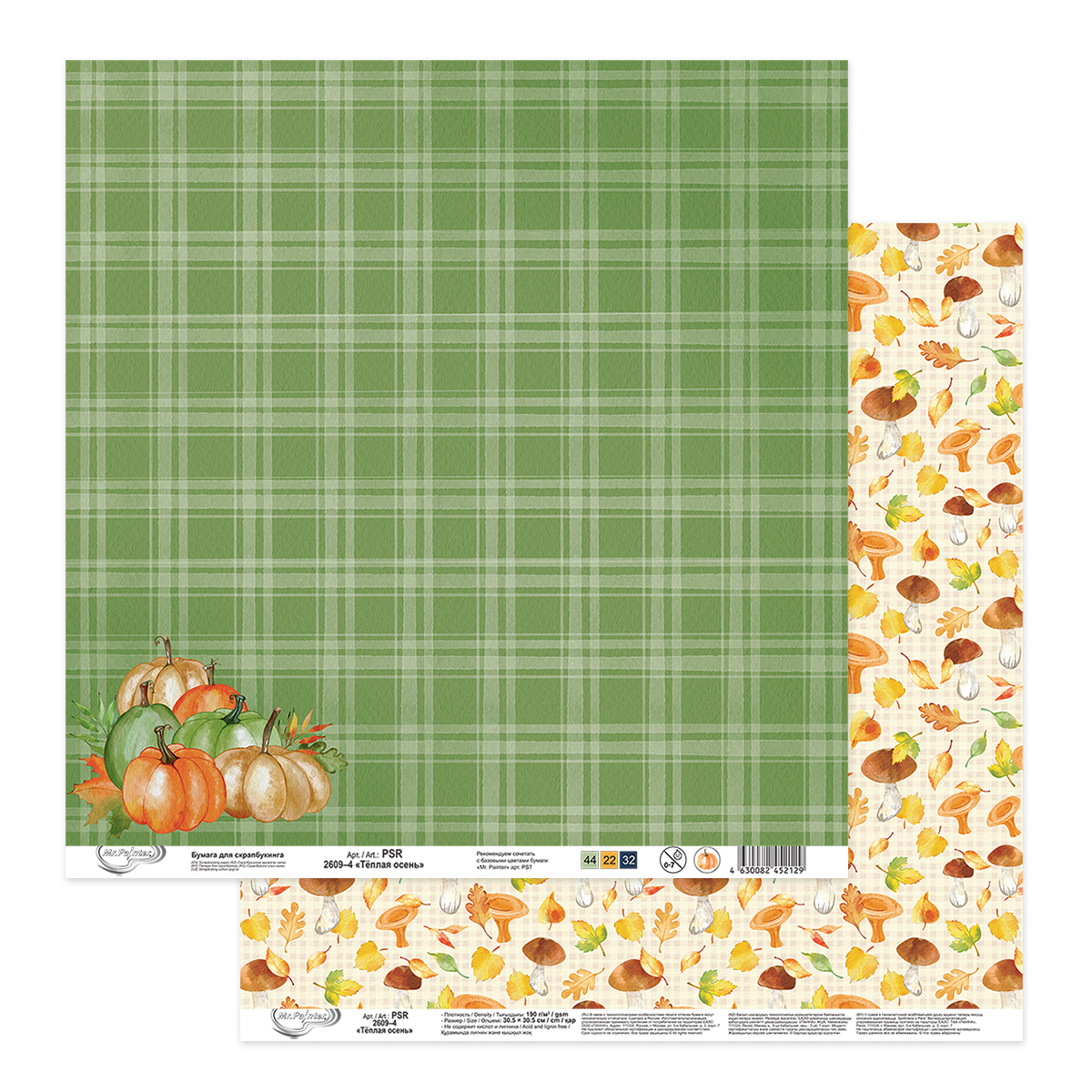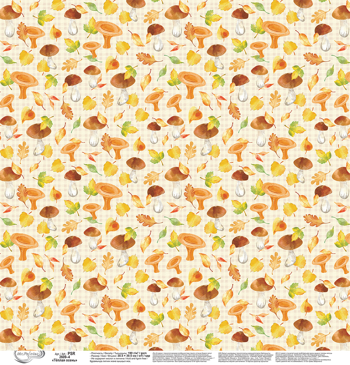 Осенняя уютная бумага для скрапбукинга "Mr.Painter" PSR 2609 станет прекрасным фоном для ваших творческих работ. Используйте листы как основу для открыток, альбомов.