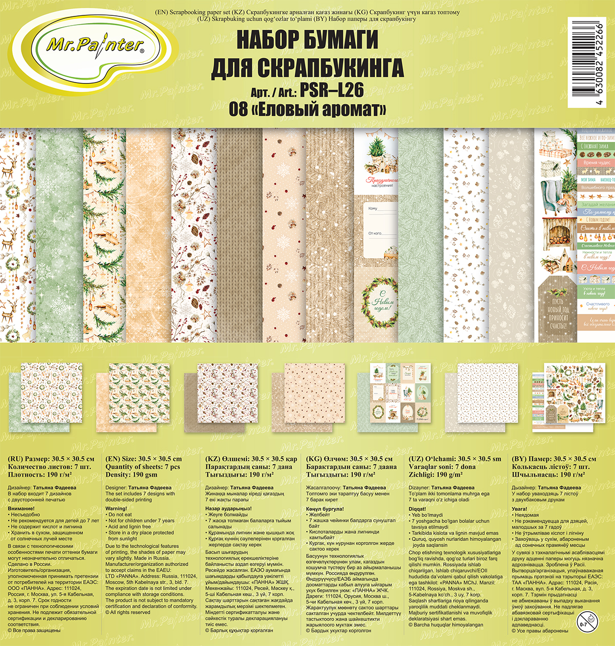 Набор бумаги для скрапбукинга 190 г/м², 30.5х30.5 см, 7 л, 08 Еловый аромат, Mr.Painter PSR-L26