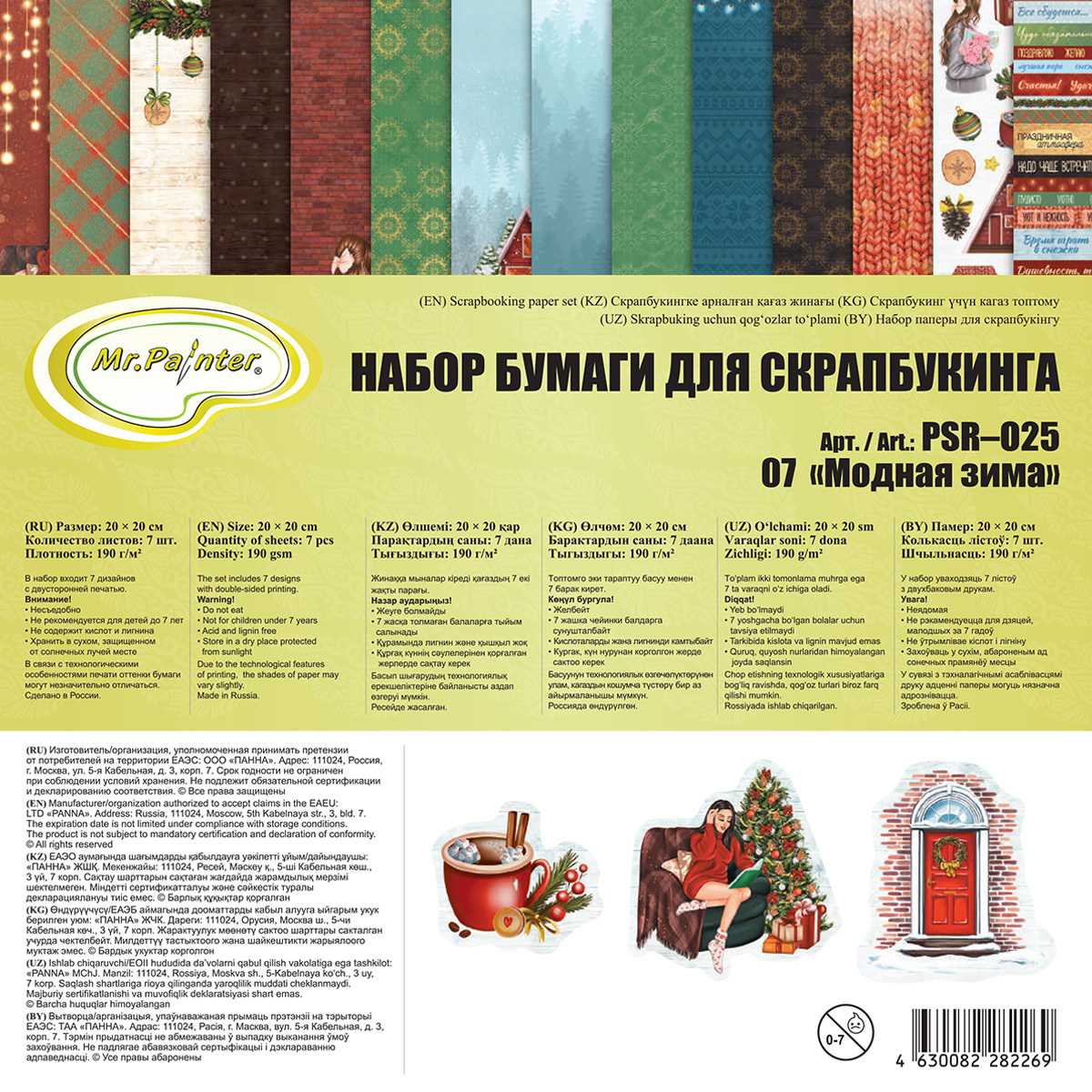 Бумага для скрапбукинга 190 г/м², 20х20 см, 3х7 л, 07 Модная зима, Mr.Painter PSR-O25