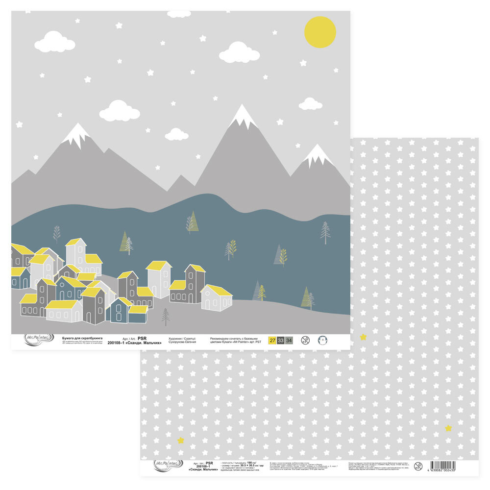 Бумага для скрапбукинга Сканди. Мальчик 190 гр/м², 30.5х30.5 см, 10 шт, Mr.Painter PSR 200108
