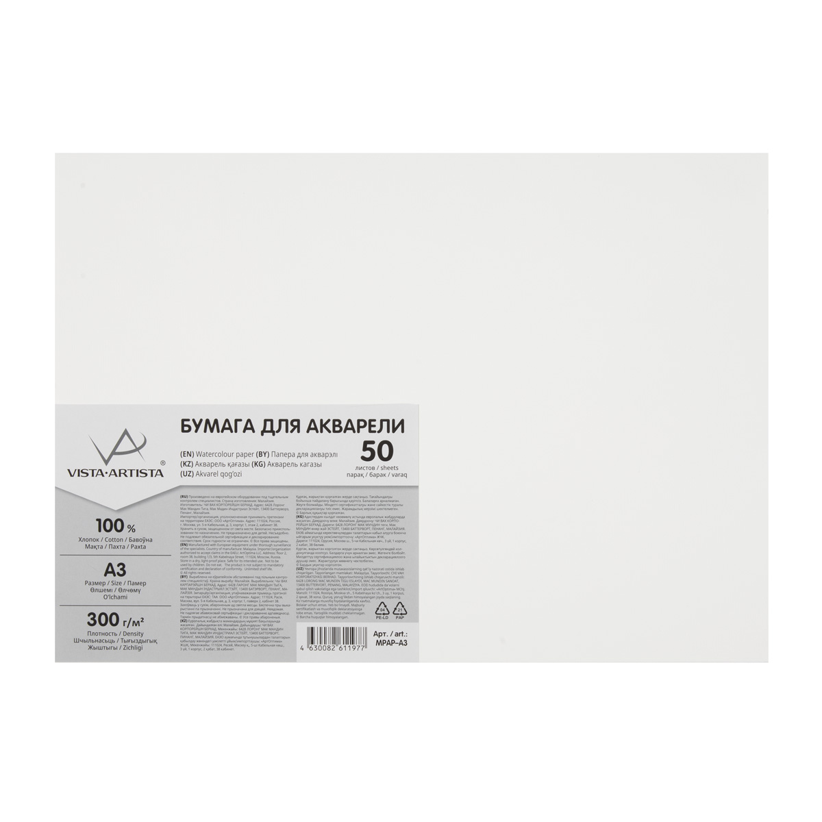 Бумага для смешанных техник Mixed Media 100% хлопок 300 г/м², 30х42 см, 50 шт, Vista-Artista MPAP-A3