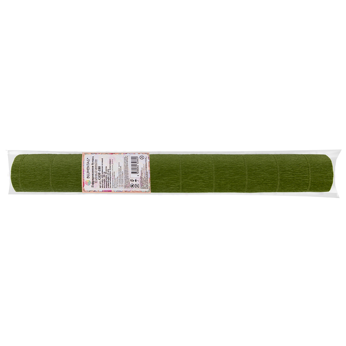 Бумага гофрированная (креповая) 180 г/м², 50 см / 2.5 м, 622 оливково-зеленый, Blumentag GOF-180